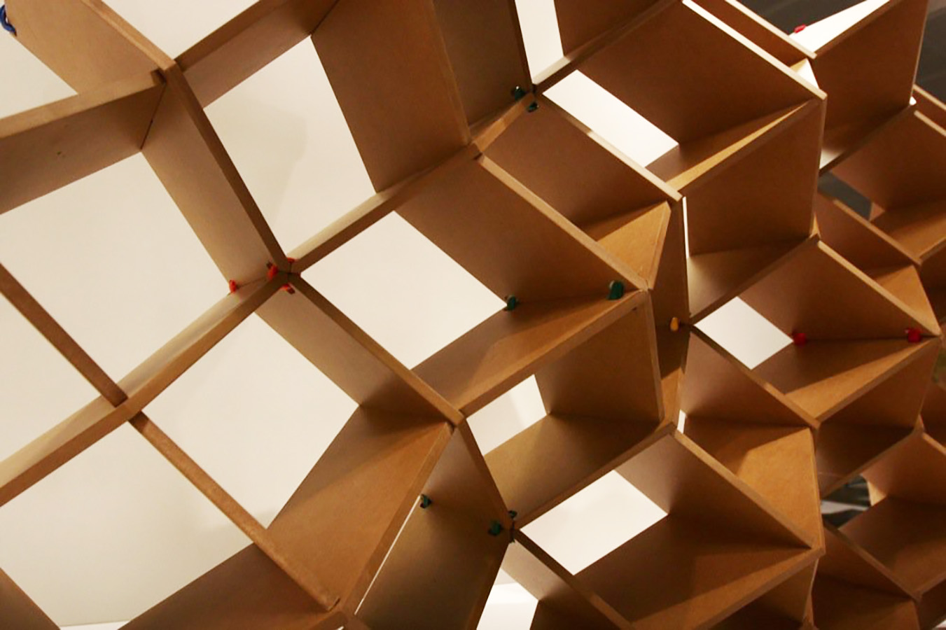 Proyecto EME se basa en módulos de MDF de 15 mm de espesor. Sistema de unión-conector es por medio de velcros ajustables, reutilizables, intercambiables. De tal forma las piezas se conectan en distintas direcciones y el diseño es modificable mediante la introducción o expulsión de módulos. El Módulo es el concepto central y fundamental para su construcción y producción industrial, siendo regular y económica. Cumpliendo con los criterios de Sostenibilidad. Estéticamente se genera Movimiento por medio de la conceptualización y repetición estructural.