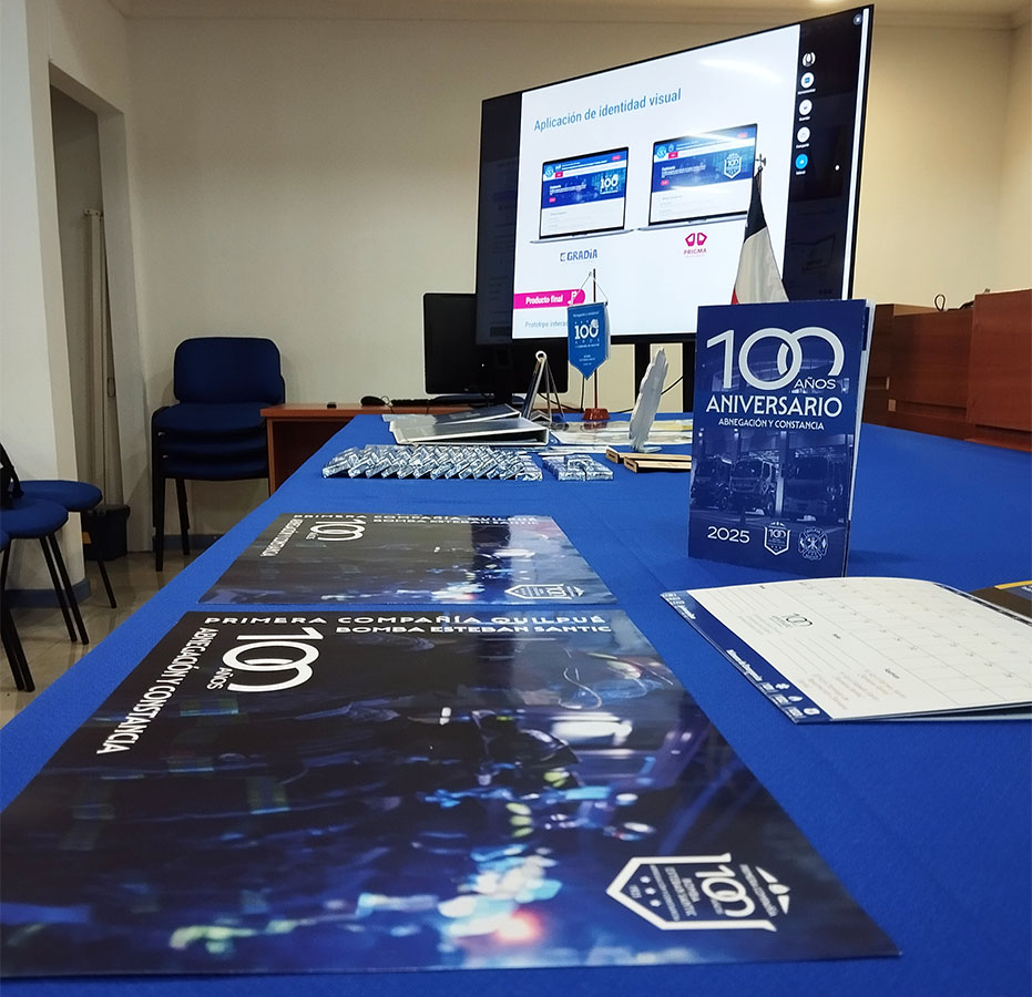 La 1ª Compañía de Bomberos de Quilpué cumple 100 años de existencia y requería desarrollar una campaña comunicacional para dar a conocer esta importante fecha. En primera instancia los estudiantes se reunieron con el representante de la Bomba, quien les hizo una presentación y describió la problemática y necesidad que tenían como institución. Posteriormente los estudiantes desarrollaron un brief y contrabrief. La primera etapa fue de análisis del cliente, público objetivo, mercado y/o contexto y referentes operacionales. Con las conclusiones de la etapa de análisis los alumnos definieron la problemática comunicacional y posteriormente definieron los conceptos que mejor representaban al cliente. Una vez terminada esta etapa se comenzó a ejecutar el proyecto gráfico, partiendo por la marca conmemorativa de los 100 años de existencia y posteriormente el desarrollo de las piezas gráficas comunicacionales definidas. En este proceso el cliente siempre estuvo presente y fue una contraparte que entregó mucha información relevante a los estudiantes. La presentación del resultado final fue en una feria en la sede del Duoc de Viña del Mar y posteriormente se hizo un montaje en el cuartel de la Bomba para que todos los miembros pudieran apreciar el Proyecto.