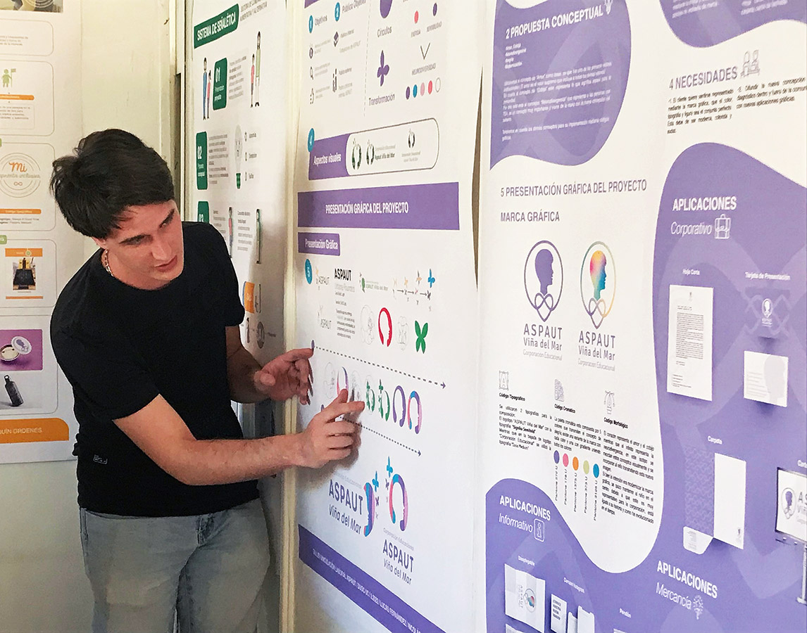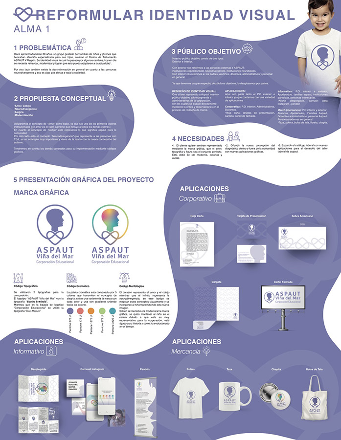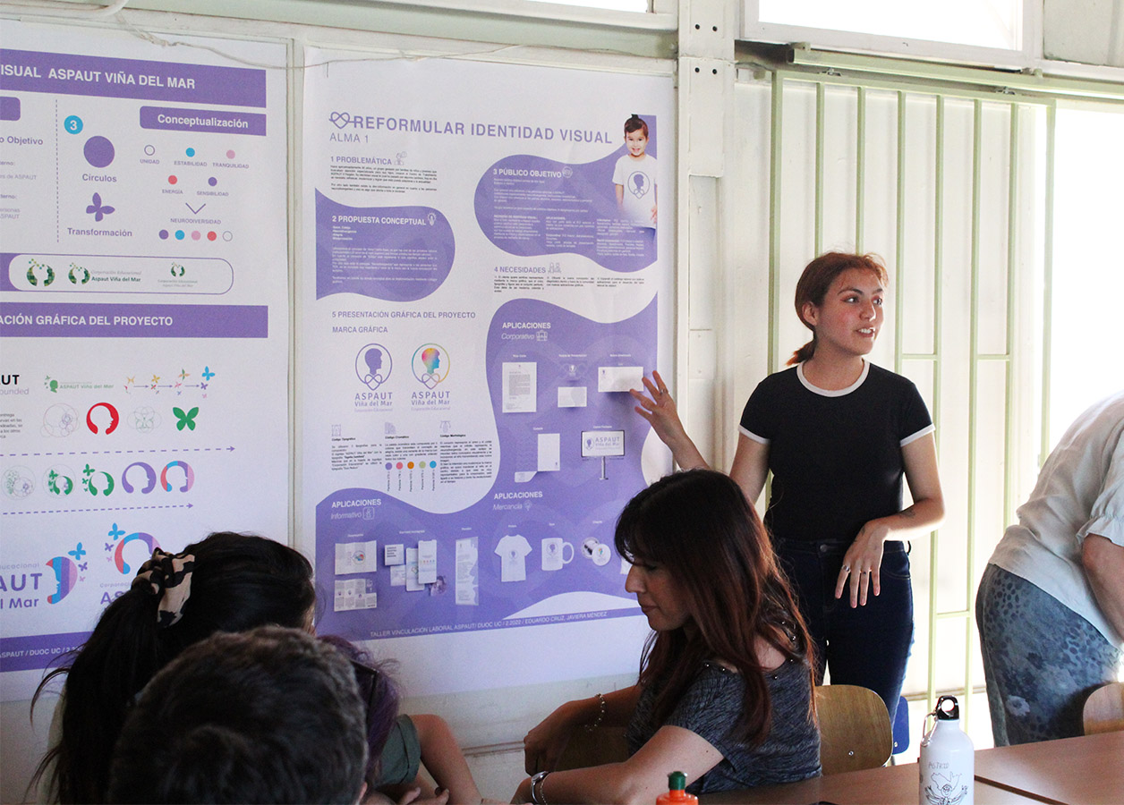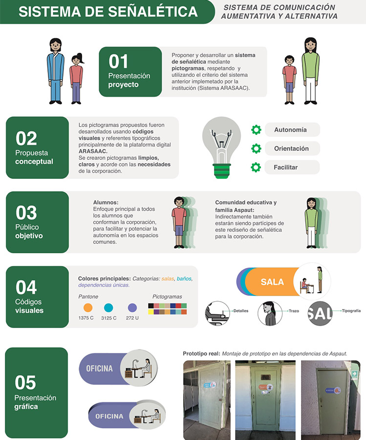 ASPAUT, Corporación Educacional, Viña del Mar, trabaja y desarrolla la intervención integral de manera gratuita a los niños, niñas y jóvenes en condición del espectro autista a través de proyectos multidisciplinarios con el fin de aportar al desarrollo de diferentes habilidades para su plena integración social. El Taller de Vinculación Laboral de la Escuela de Diseño Duoc UC, Sede Viña del Mar, contacta a esta Institución y se genera un vínculo virtuoso. Este Proyecto surge de la siguiente pregunta: ¿Cómo detectamos oportunidades para optimizar la comunicación en diferentes contextos?. Para luego proyectar y dar valor a esas experiencias a través del Diseño Gráfico.