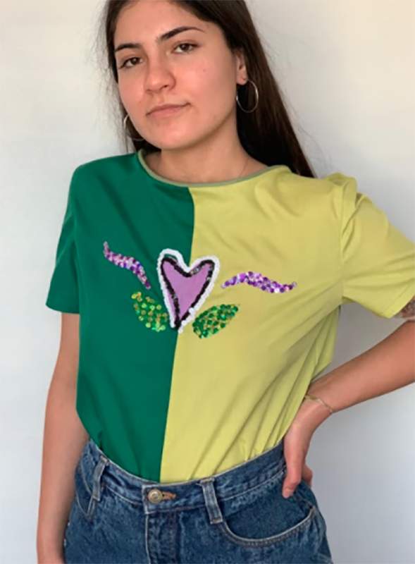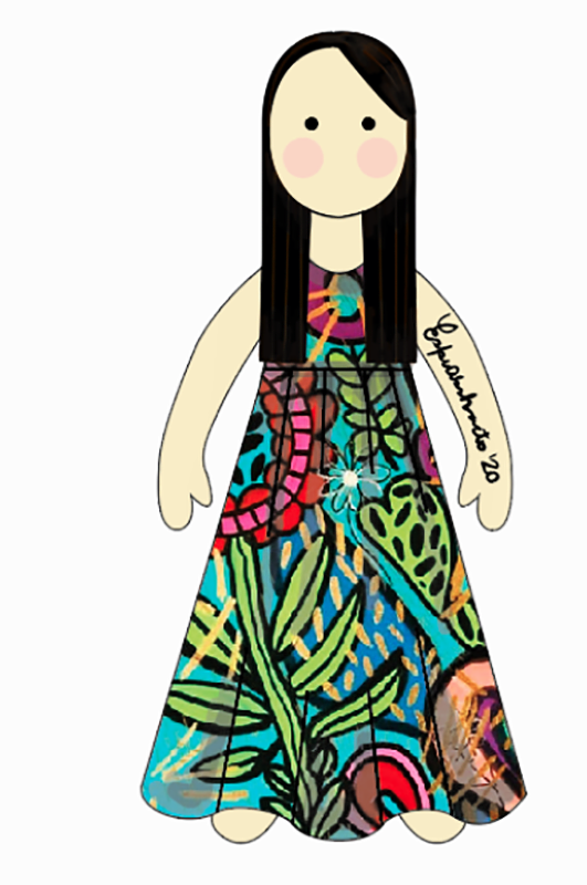 Colaboración con artista visual Espe Abstracto, quién dispone a los estudiantes sus obras análogas y digitales para que estos desarrollen líneas de productos de vestuario comercial, editorial y merchandising de la marca, tomando como referencia la estética Naif que la artista posee como impronta.