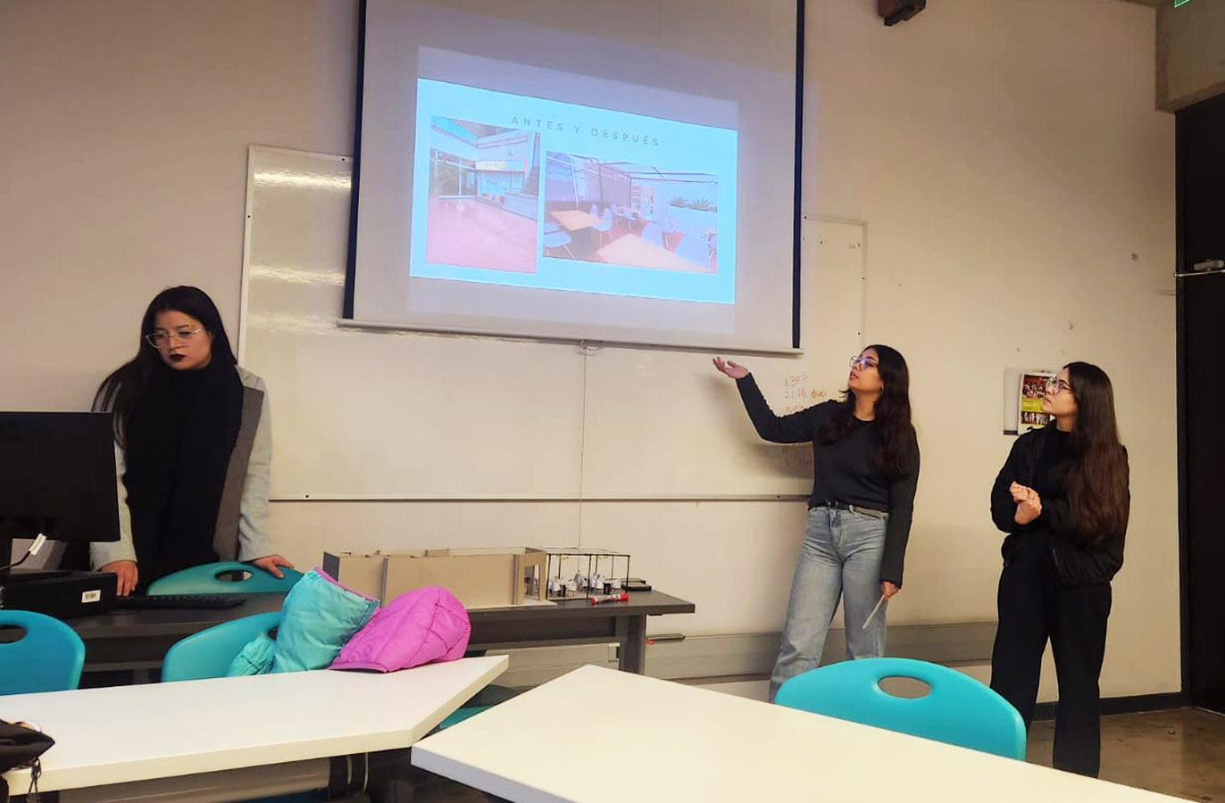 Los estudiantes en equipo buscan una microempresa en donde deben diseñar una propuesta de mejora de los espacios de trabajo, para esto se entrevistan con el representante y realizan levantamiento de información, análisis de los requerimientos y necesidades de los usuarios y espacios, considerando criterios de diseño universal, sustentabilidad, marco legal y normativo e identidad corporativa.