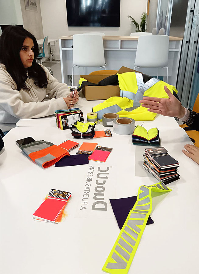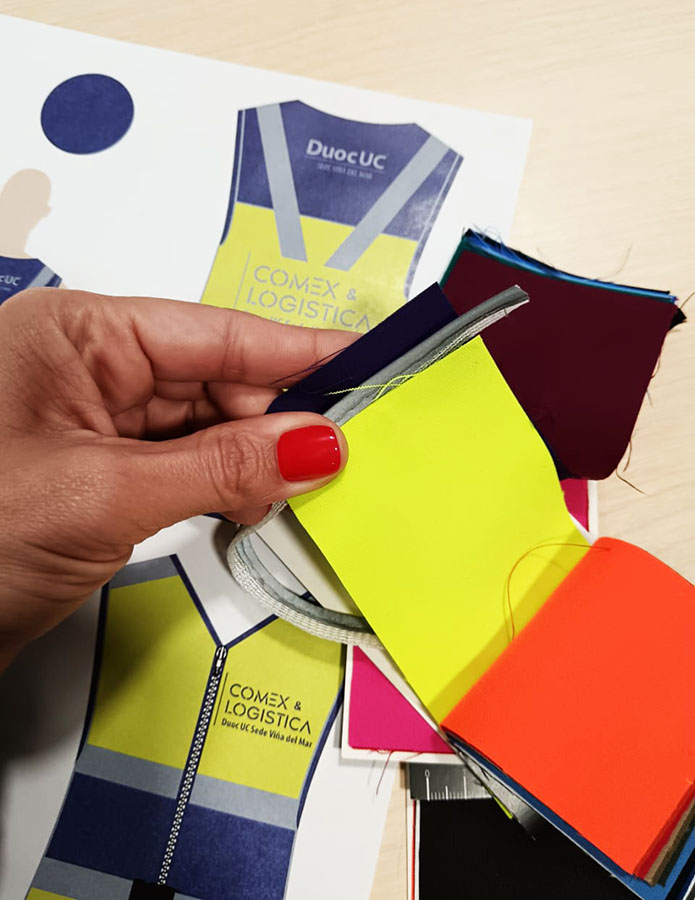 Las Direcciones de Carrera de las Escuelas de Diseño de Vestuario y Administración y Negocios, se juntaron para crear un Proyecto para otorgar seguridad y distinción a los estudiantes de Comercio Exterior y Logística. El objetivo del Proyecto es generar una Práctica Profesional, dónde se pueda levantar información de necesidades, diseñar en base a normativas de alta visibilidad y producir chaquetas que sean distintivas para los estudiantes de Comercio Exterior y Logística que deben hacer visitas en terreno a las empresas.