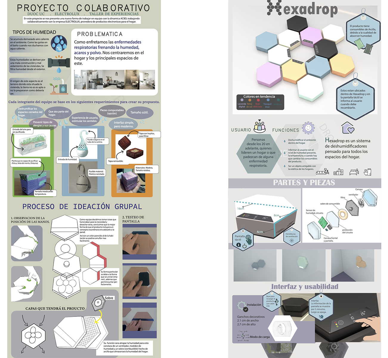 Desarrollo del Brief entregado por la empresa Electrolux Group dentro de la asignatura «Diseño de Experiencias». El Brief es trabajado en los Desafíos 1, 2 y 3 de la Estrategia Metodológica ACBD. Electrolux entrega un Brief desarrollado en base a uno de sus territorios «Wellbeing: Make the home a healthier place to thrive in, with half the carbon footprint» (Haga del hogar un lugar más saludable para prosperar, con la mitad de la huella de carbono). Los resultados esperados pueden ser ecosistemas de productos, accesorios, consumibles, los cuales pueden tener o no conectividad embarcada.