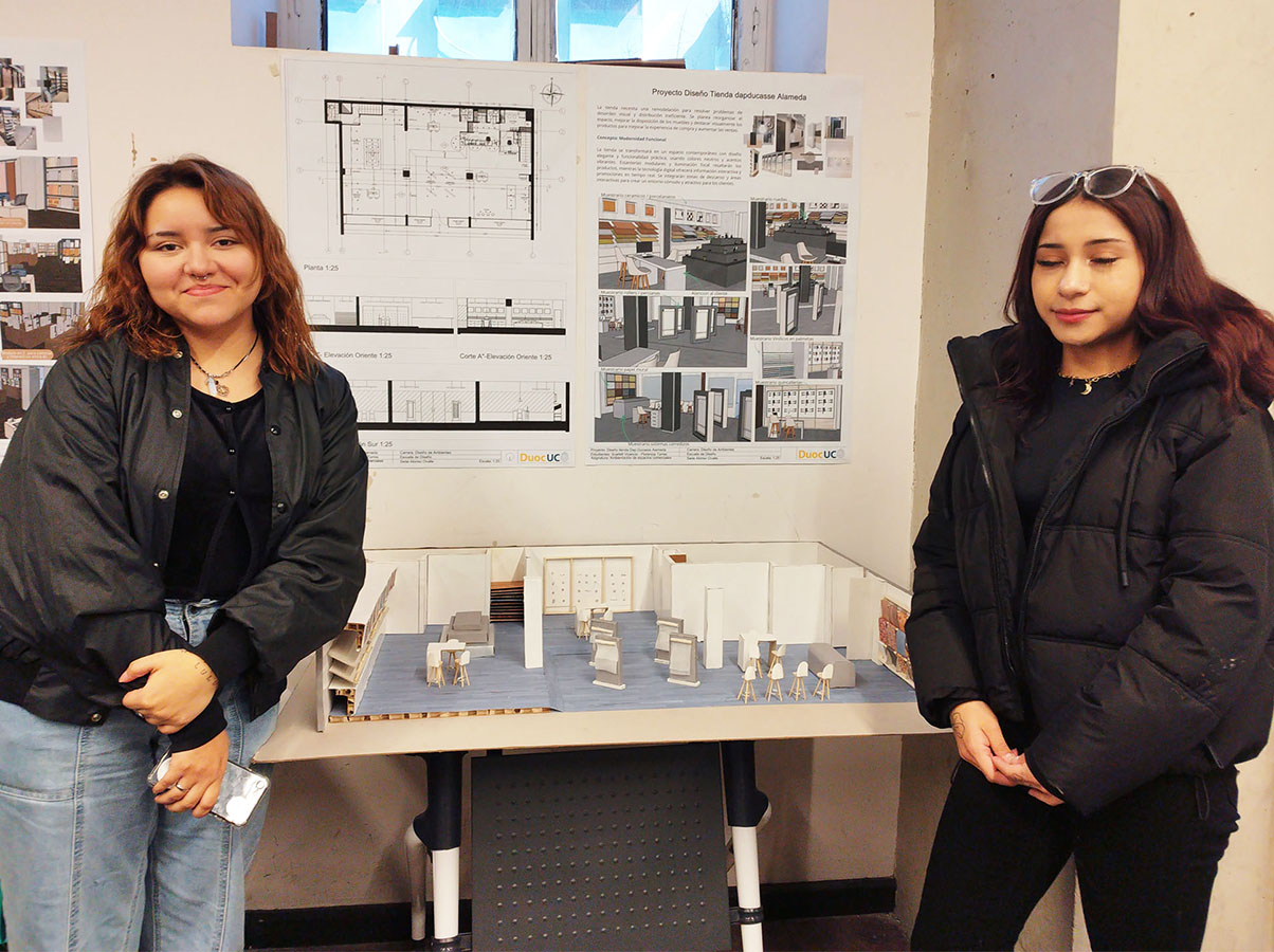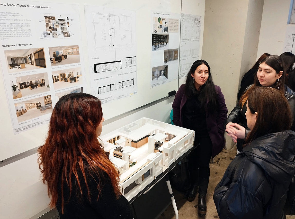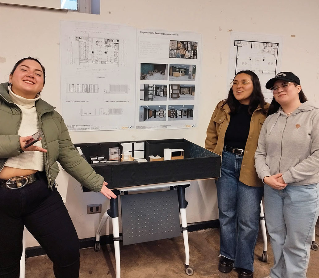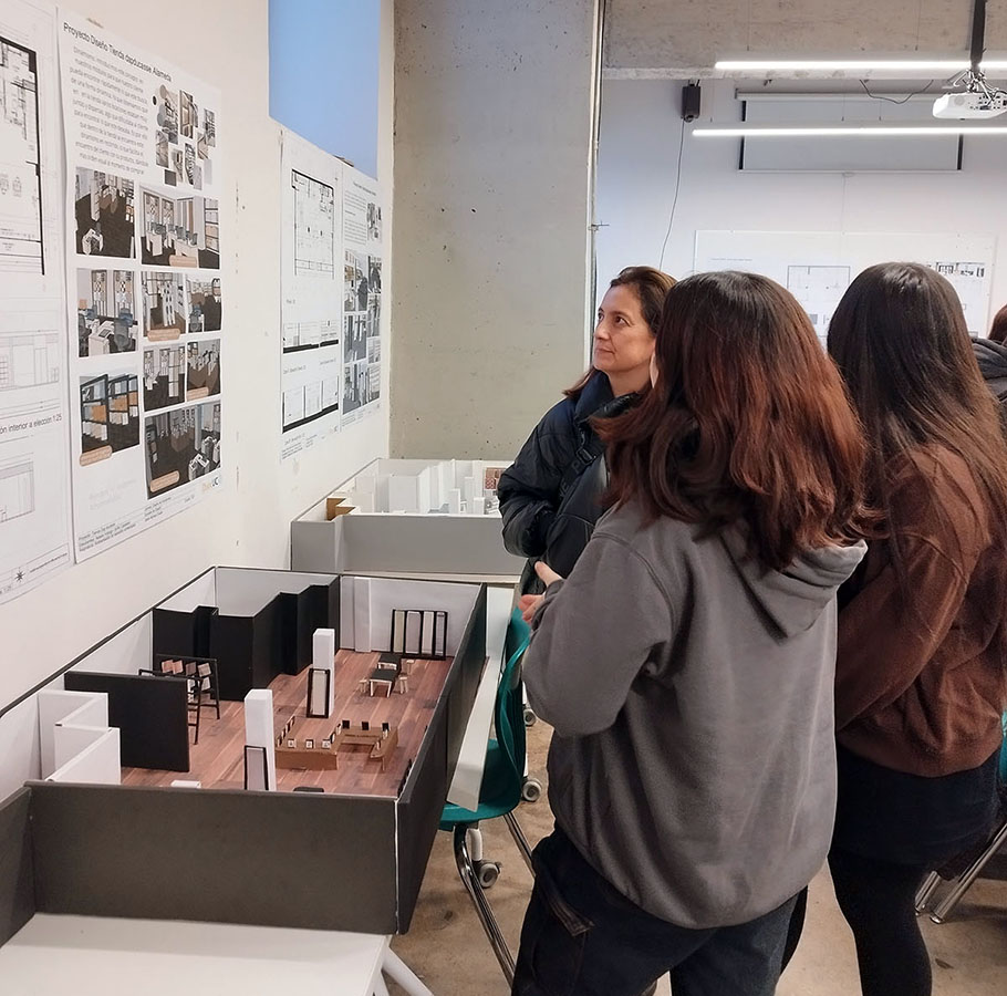 PRESENTACIÓN FINAL: La presentación del Proyecto fue realizada en Duoc UC sede Padre Alonso Ovalle, con contraparte presente, montaje de láminas y maqueta en sala de taller. La contraparte recorrió la entrega de los proyectos, y cada equipo de trabajo se fue acercando y entablando una conversación con el cliente, para poder explicarle los últimos ajustes de sus proyectos, desarrollo y evidencias finales.