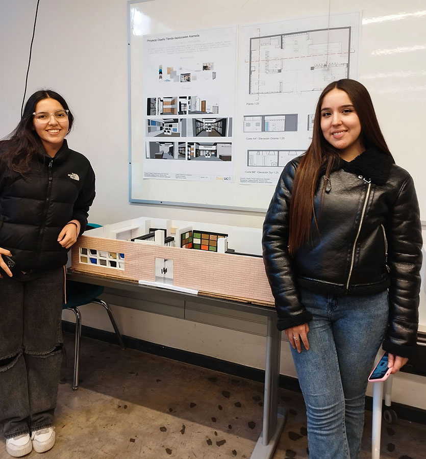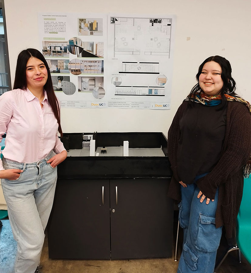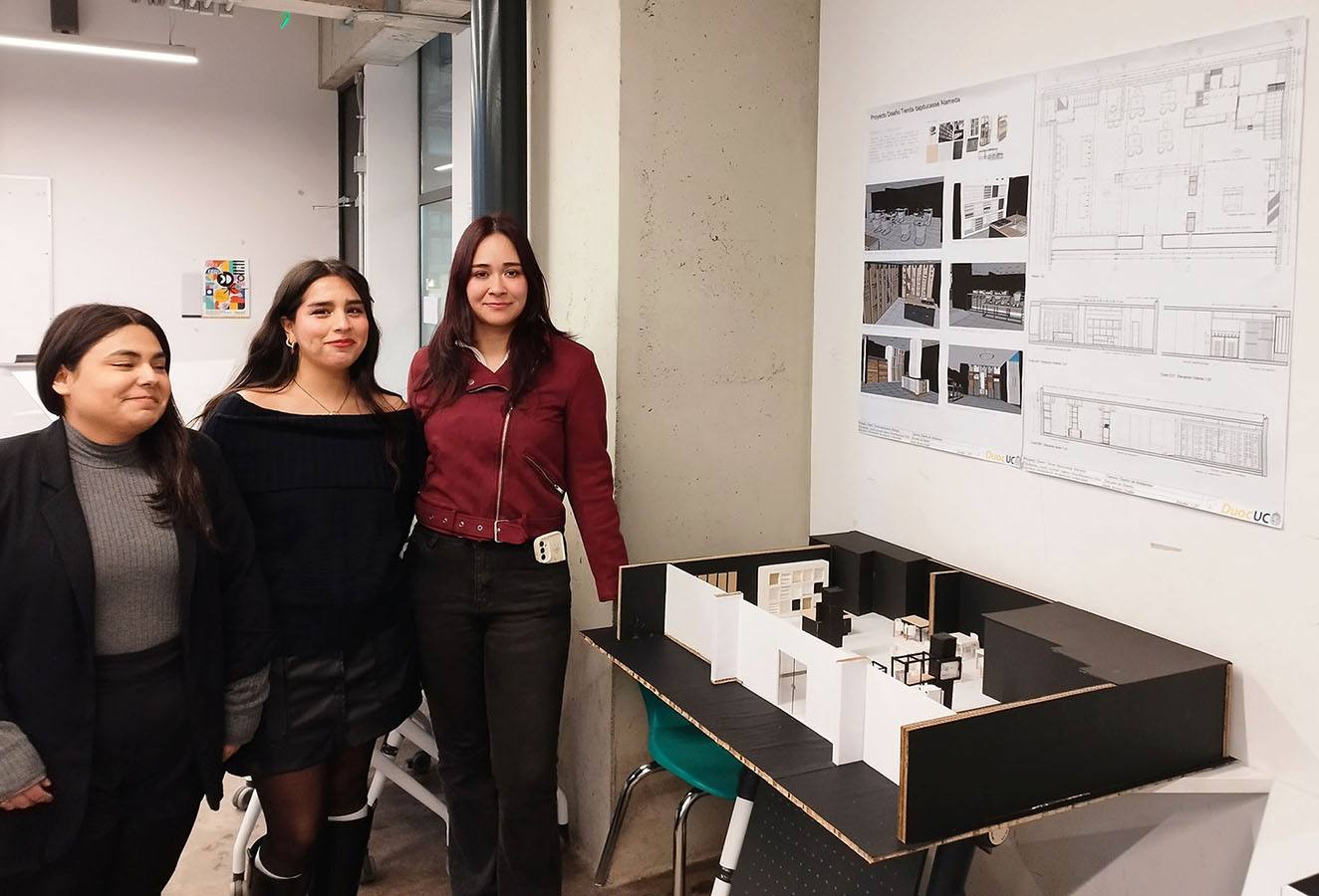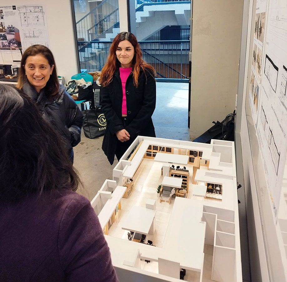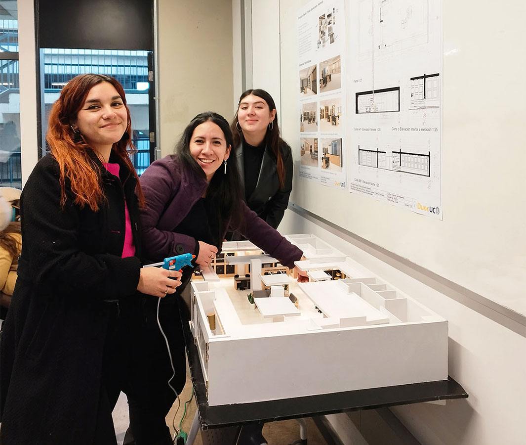 PRESENTACIÓN FINAL: La presentación del Proyecto fue realizada en Duoc UC sede Padre Alonso Ovalle, con contraparte presente, montaje de láminas y maqueta en sala de taller. La contraparte recorrió la entrega de los proyectos, y cada equipo de trabajo se fue acercando y entablando una conversación con el cliente, para poder explicarle los últimos ajustes de sus proyectos, desarrollo y evidencias finales.