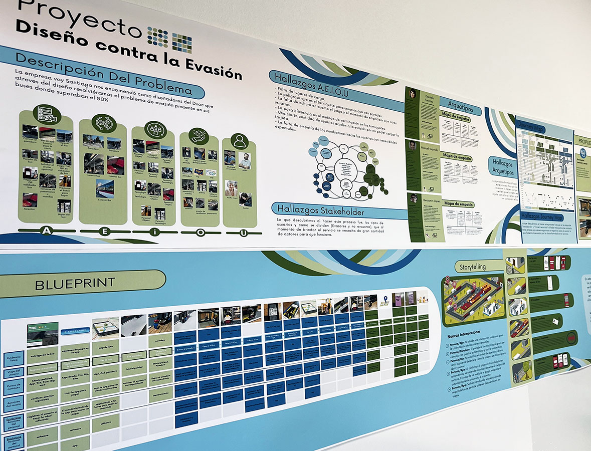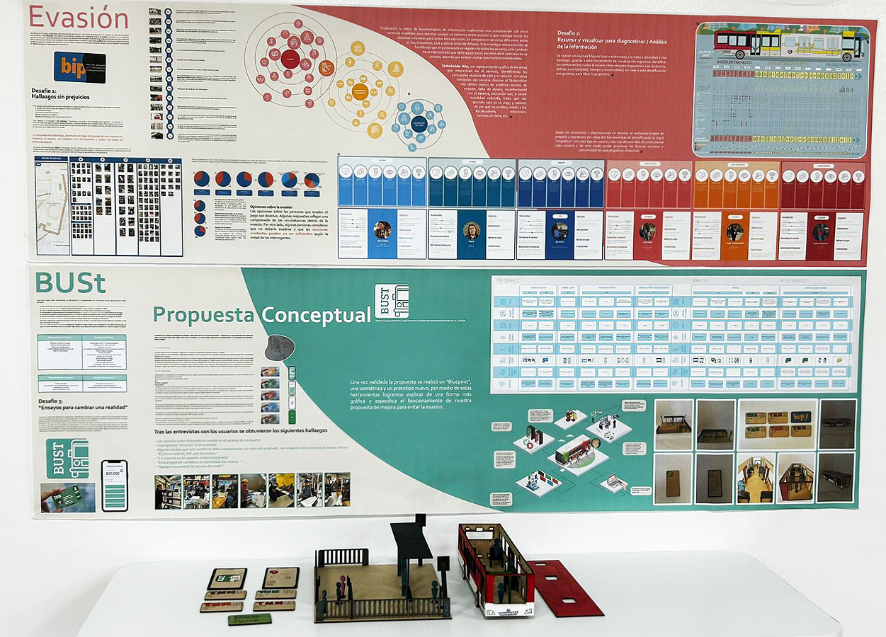 Desarrollo de soluciones enfocadas en la disminución de la evasión del pasaje en el transporte público de la Región Metropolitana, por medio de la observación e investigación del comportamientos de los usuarios y el funcionamiento del servicio, con la finalidad de descubrir oportunidades de mejora, para así crear una experiencia mejorada a través de los puntos de contacto e interacciones claves dentro del servicio.