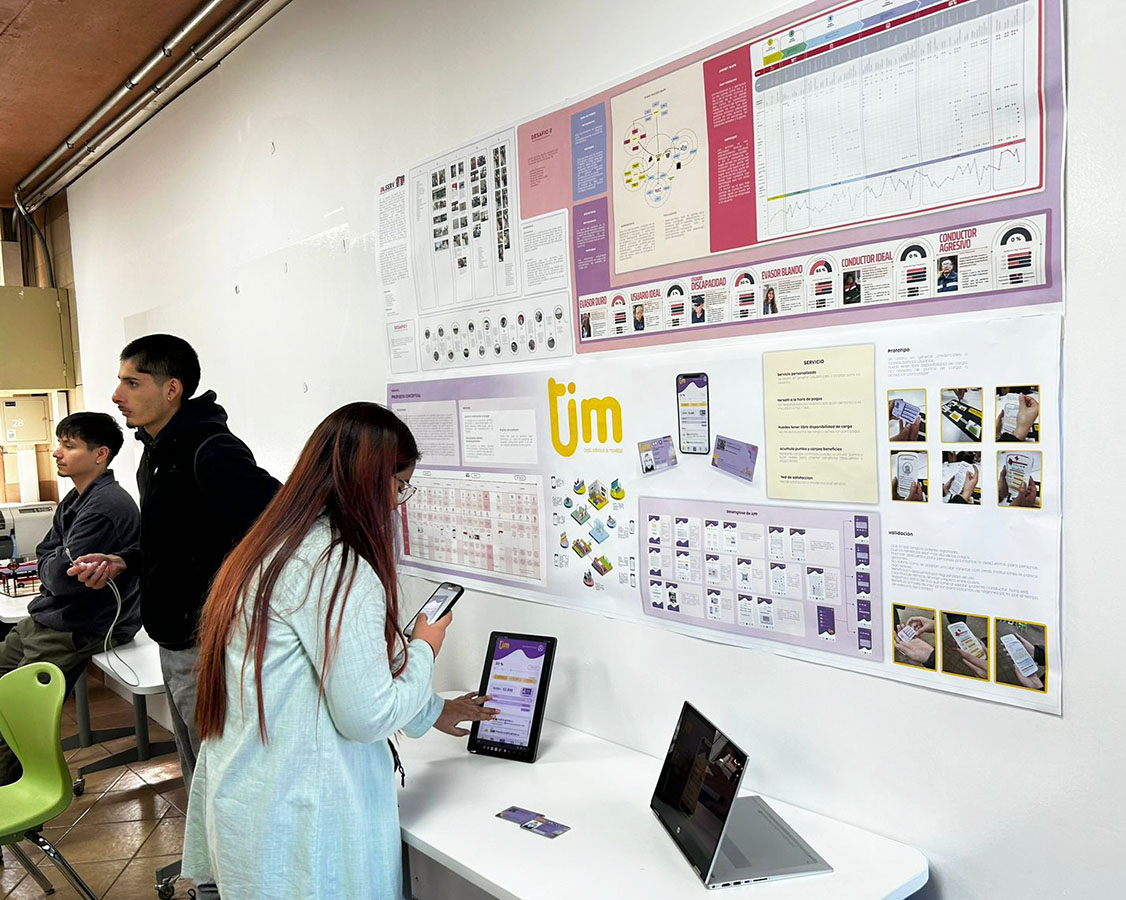 PRESENTACIÓN FINAL: La presentación del Proyecto colaborativo entre «Voy Santiago» y la asignatura «Diseño de Servicio» se llevó a cabo en un evento estructurado en el que participaron seis equipos de estudiantes, los cuales contaban con 10 minutos para dar a conocer sus proyectos. Cada equipo tuvo la oportunidad de presentar su propuesta en un formato estandarizado que incluía dos láminas de presentación y prototipos de sus soluciones. Lámina 1: Levantamientos de información y hallazgos. • Investigación Inicial. • Identificación de Problemas. Lámina 2: Propuesta. • Descripción de la Solución. • Impacto Potencial. • Blue print. Presentación de Prototipos: Cada equipo mostró sus prototipos junto con sus presentaciones. Retroalimentación de la Contraparte: • Fortalezas de la Propuesta. • Áreas de Mejora. • Implementación. • Reconocimiento al esfuerzo y creatividad.