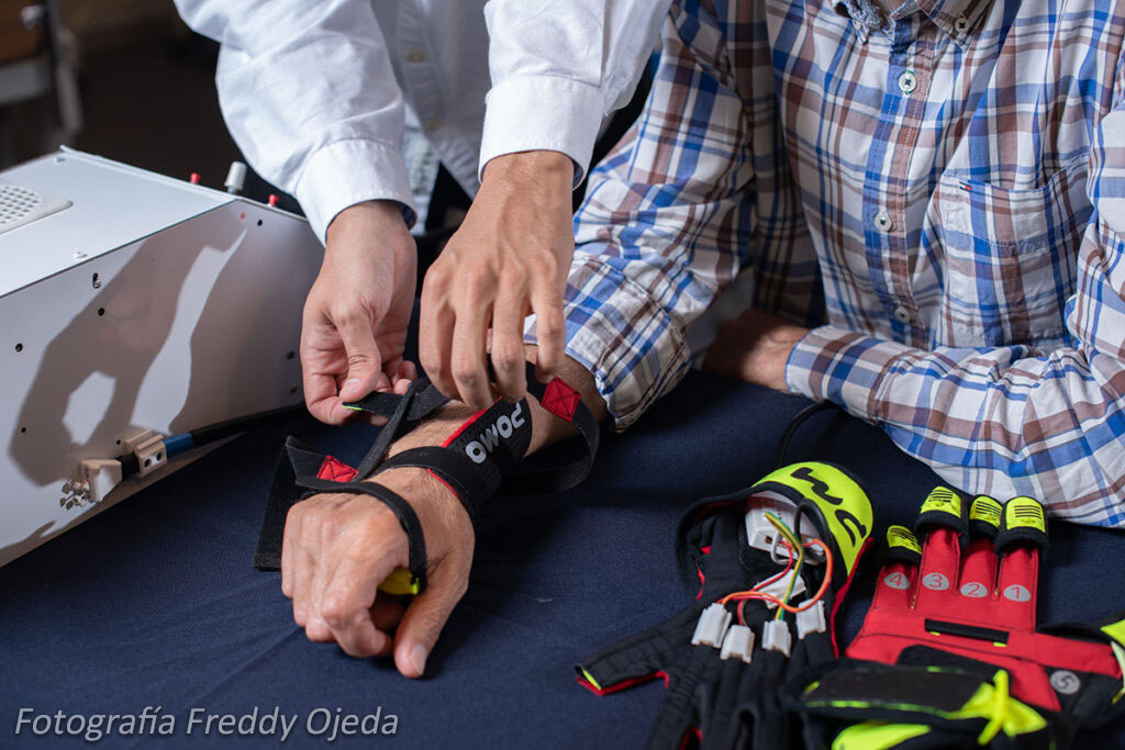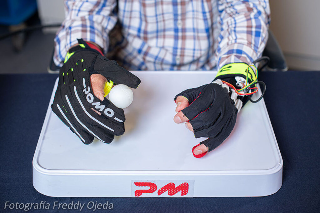 Durante el proyecto se realizó un levantamiento antropométrico, instancia que permitió medir a 100 sujetos para luego generar criterios de tallaje para ambos guantes (replicador y sensado). Lograr definir tallas adecuadas fue un factor fundamental ya que los sensores que captan el movimiento de la mano no espástica, deben estar correctamente ubicados en cada tendón para así lograr el objetivo de la rehabilitación. El proyecto, desarrollado con la empresa POMO, culminó con la fabricación de una serie de muestras que posteriormente serían validadas a cargo de la empresa.