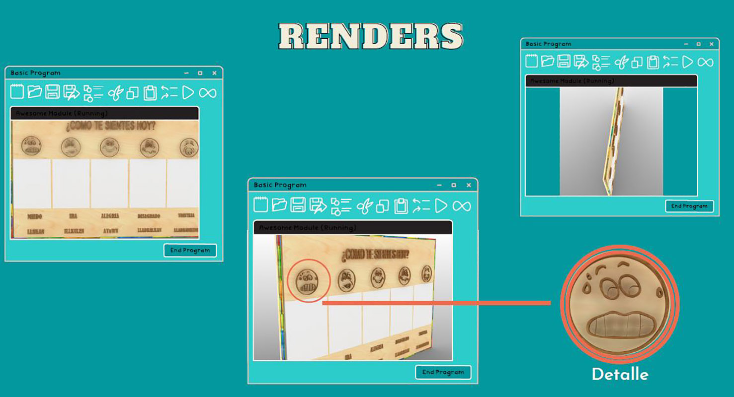 Proyecto Colaborativo asociado a la asignatura de Taller de Producto Centrado en el Usuario con la Escuela de Lenguaje Ruka Ayelen, esta es una institución de educación preescolar que entrega sus servicios a niños de 3 a 5 años 11 meses, establecimientos educacionales de educación parvularia con la atención temprana del Trastorno Específico del Lenguaje. La Escuela requiere el diseño de accesorios e implementos para potenciar el aprendizaje, para lo cual se decidió trabajar en la creación de elementos didácticos asociados a salas temáticas con asistencia de terapeuta educacional, fonoaudiólogo y educadora, para lo cual se realizó un proceso de investigación del contexto y variables que están involucradas para generar diferentes elementos didácticos para el desarrollo de los niños.
