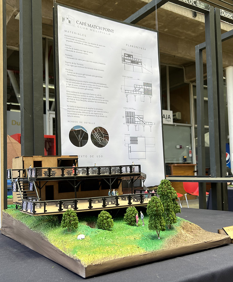 En conjunto con el Club de Tenis de Melipilla, los estudiantes de Diseño Industrial desarrollaron el diseño de Espacios de Encuentro dentro del Centro Deportivo, tomando en consideración las necesidades presentadas por los socios y la información recopilada al empatizar con los visitantes al Club, quienes eran entre docentes, socios, jugadores y apoderados. Gracias a esto y a un arduo trabajo investigativo, lograron presentar propuestas físicas y digitales con un enfoque sustentable.