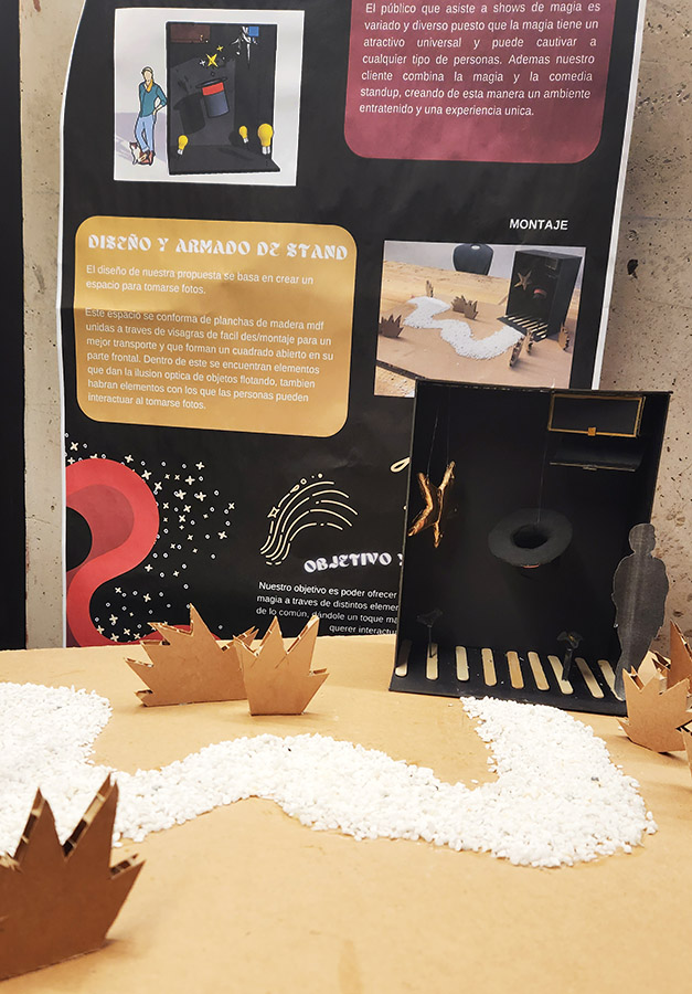 PRESENTACIÓN FINAL: Consistió en una exposición en el Auditorio de la sede Padre Alonso de Ovalle, donde los estudiantes fueron recibidos con un Show de Magia por parte de Ignacio de Jaurdan, el «cliente» y posterior a eso los alumnos expusieron sus trabajos, con láminas y maquetas.