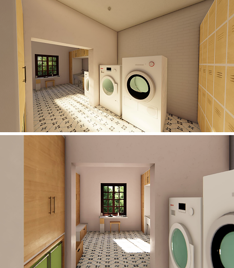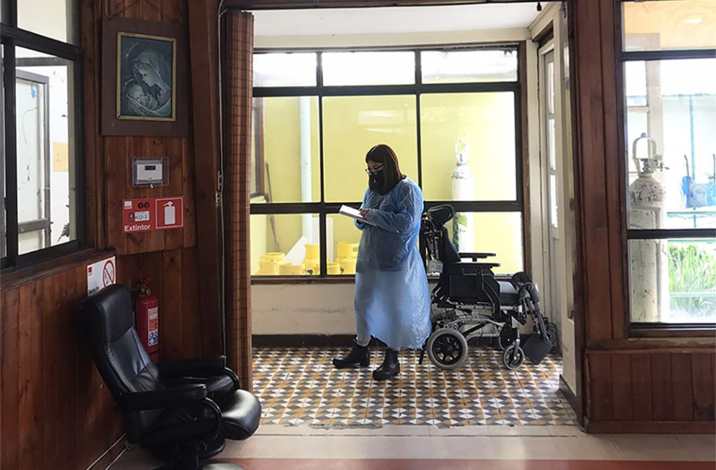 Hogar Jesús Crucificado de Fundación Las Rosas recibe actualmente a 39 adultos mayores de dependencia severa. Sus dependencias se encuentran en lo que fue un colegio que han ido adaptando para cumplir con las necesidades funcionales y normativas de un hogar de ancianos. Tienen proyectado la mejora y construcción de 3 espacios dentro del hogar, de los cuales los estudiantes de diseño desarrollaran 2 según el orden de prioridad dado por la administradora. De manera grupal se desarrolló el espacio de lavandería, y de manera individual se proyectó una nueva sala de terapia ocupacional.