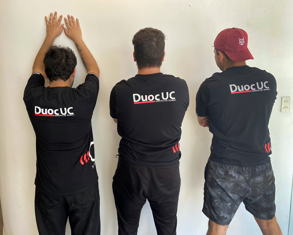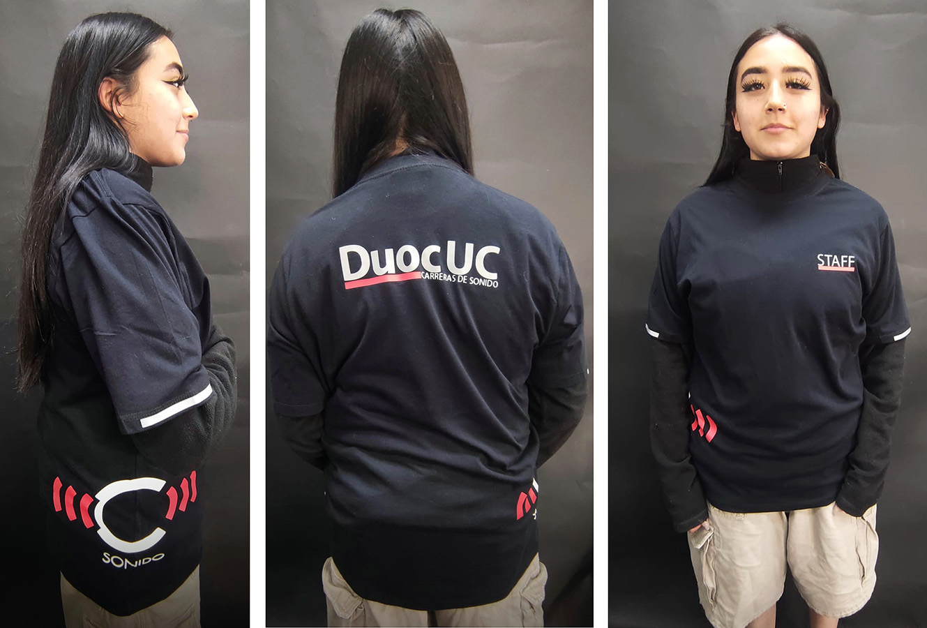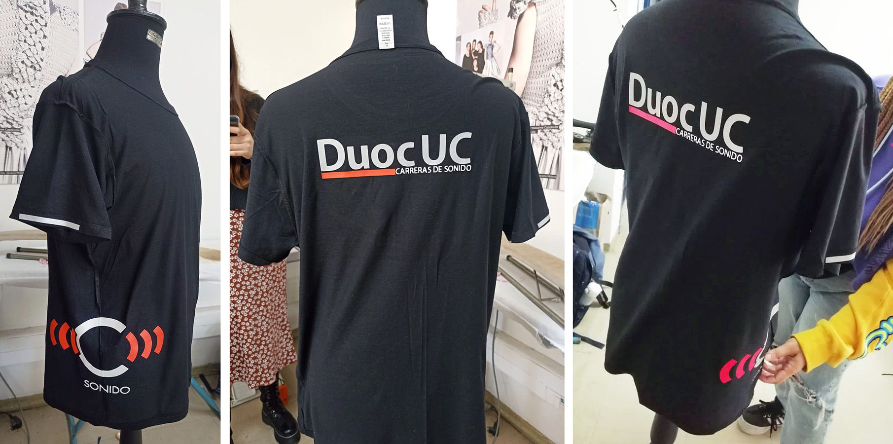 PRESENTACIÓN FINAL : Finalizó con la realización de 40 poleras para los estudiantes de la Carrera de Sonido. El vestuario fue entregado al Director de Carrera, quien entregó a los estudiantes asistentes al evento el vestuario diseñado por las practicantes.