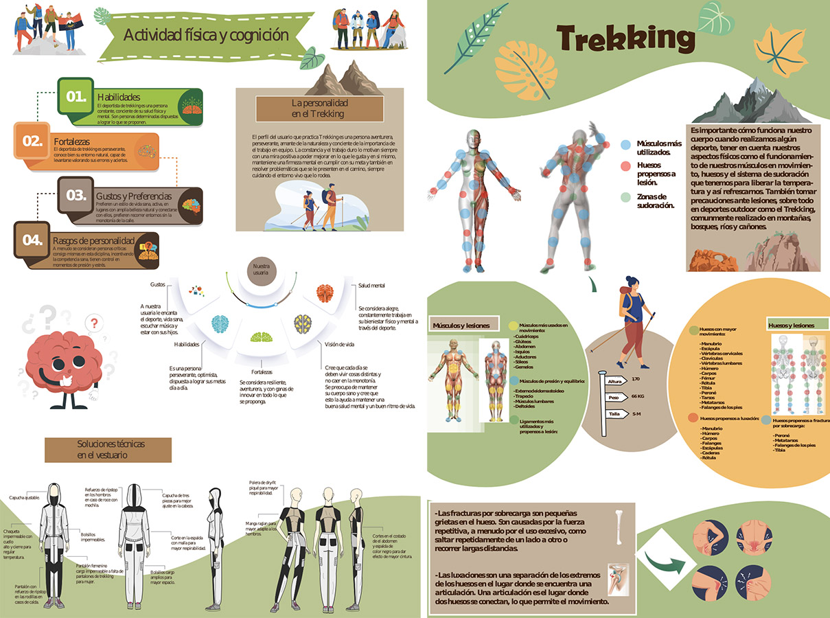 El Proyecto busca entender y responder a través del diseño a las necesidades de un deportista en 3 diferentes disciplinas: Trekking, Trail running o Bike Polo. Para este objetivo, los estudiantes estudiaron a un usuario que tuviera experiencia de al menos dos años practicando alguno de los deportes señalados, para luego investigar acerca de los atributos técnicos que este necesita para desempeñarse de manera óptima en dicha actividad. Se tomaron en cuenta diferentes problemáticas recurrentes durante el entrenamiento para diseñar un vestuario acorde a las exigencias, investigando además las diferentes materialidades, historia del deporte y el contexto local y así entregar una propuesta innovadora y de alto valor.
