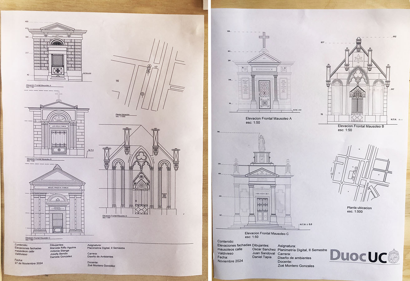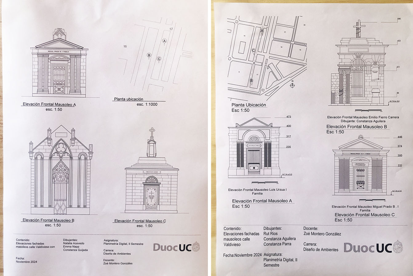 PRESENTACIÓN FINAL: Los trabajos se exponen impresos a través de láminas en la sede San Carlos de Apoquindo y se entrega una copia digital a la contraparte, Cementerio General.