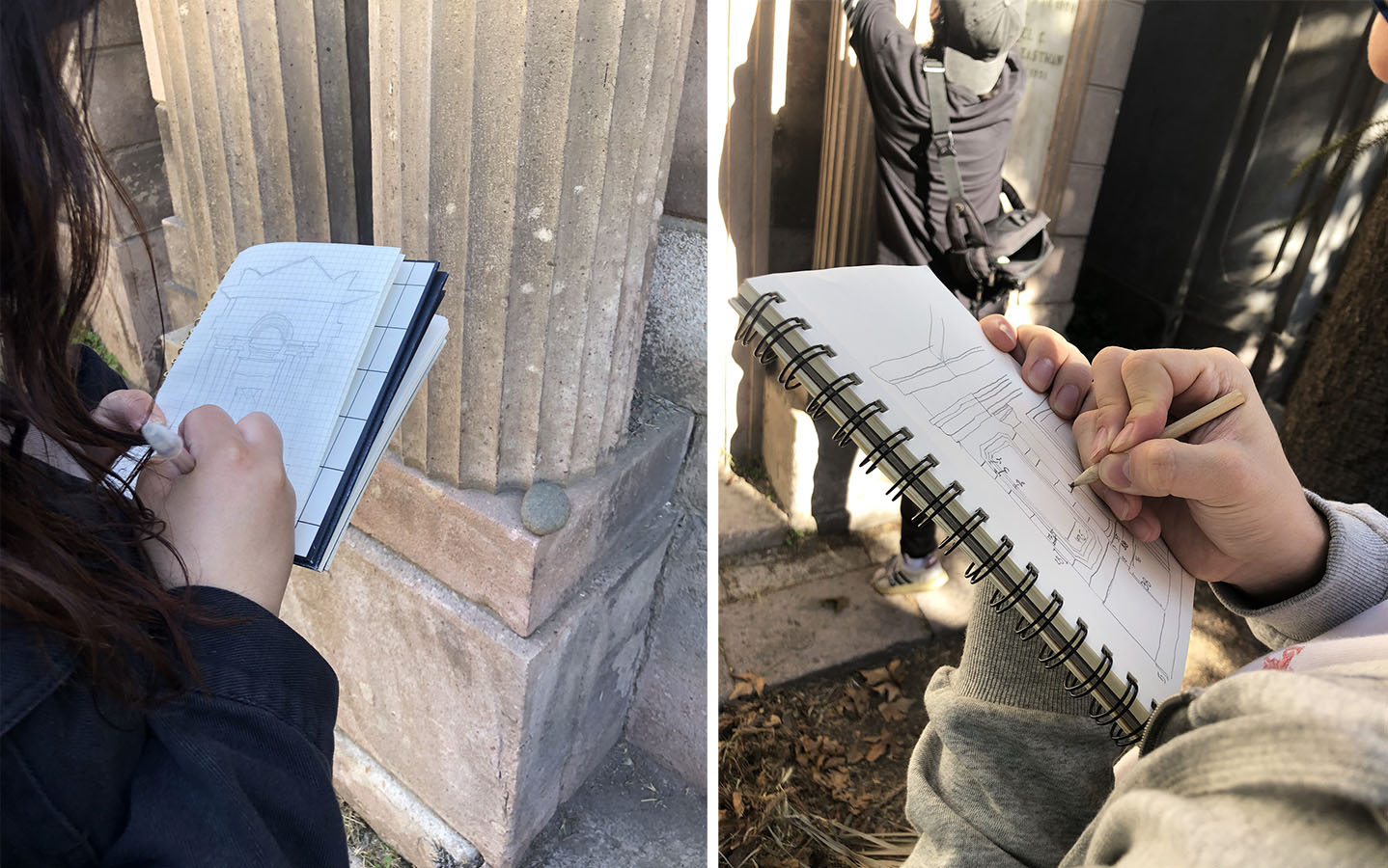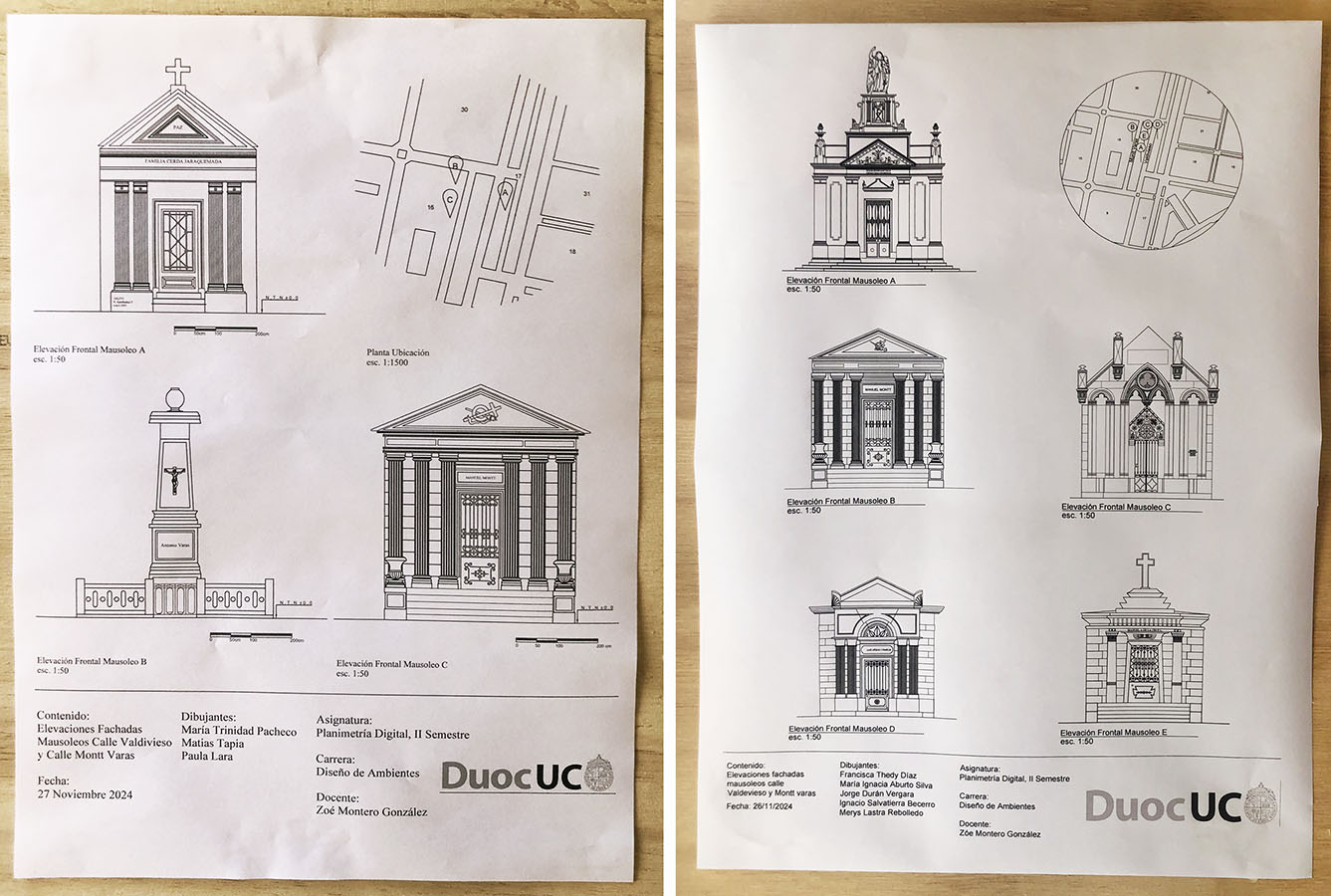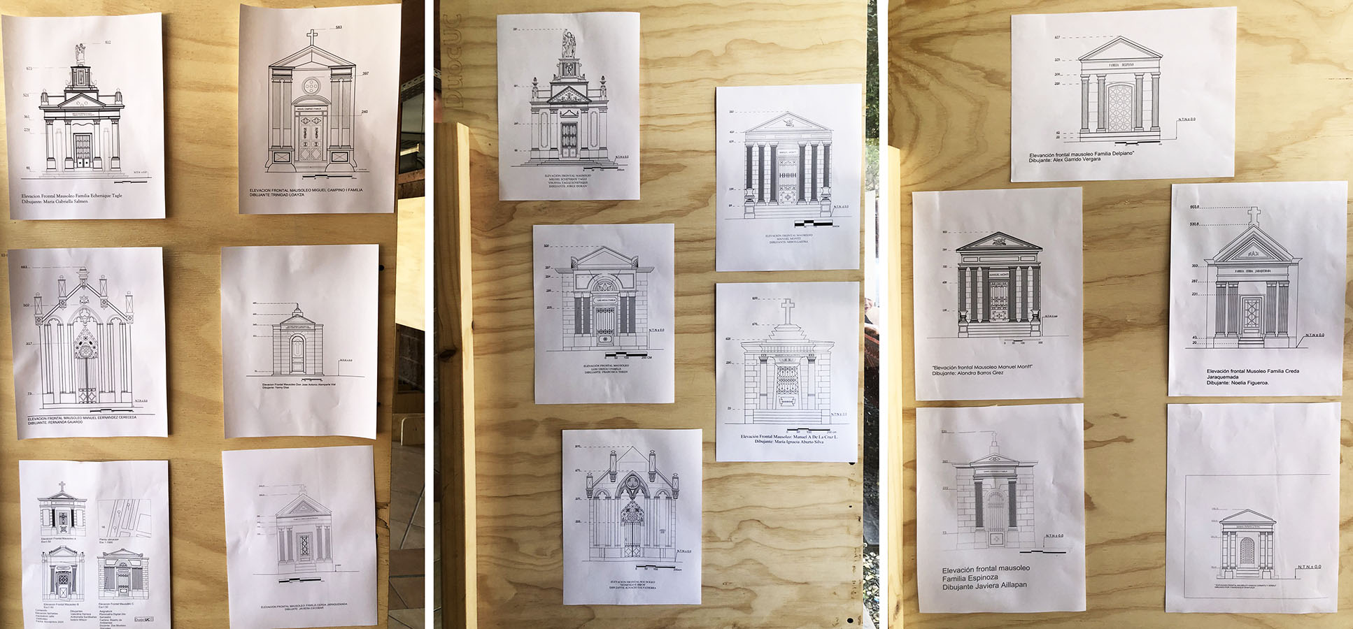 Este Proyecto consiste en el levantamiento planimétrico de información y dibujo de fachadas de mausoleos del sector patrimonial del Cementerio General. Se realiza una visita a terreno para tomar las medidas del mausoleo escogido, posteriormente se hace un dibujo análogo que luego se traspasa a medios digitales. Se desarrolla en el contexto de la asignatura «Planimetría Digital».