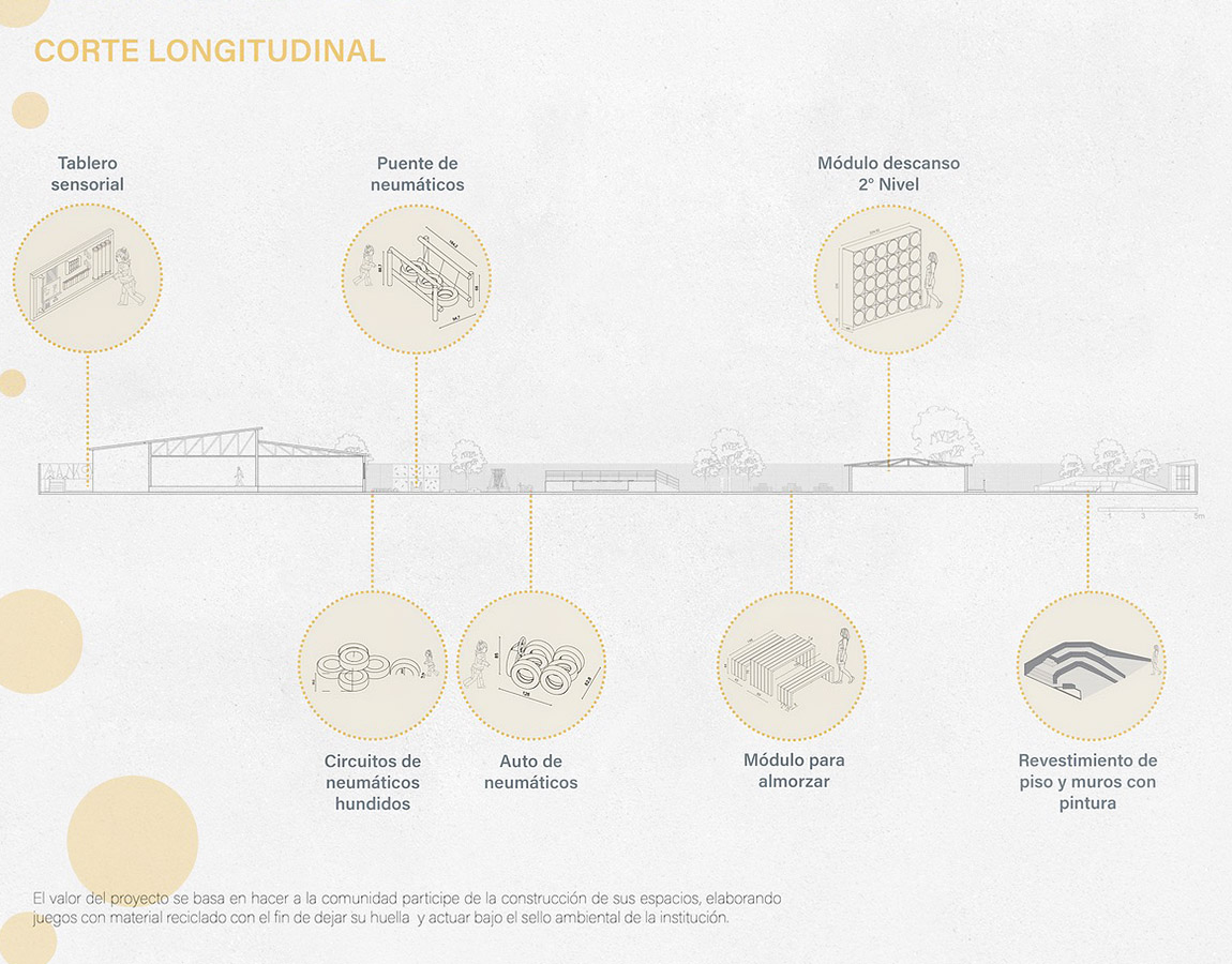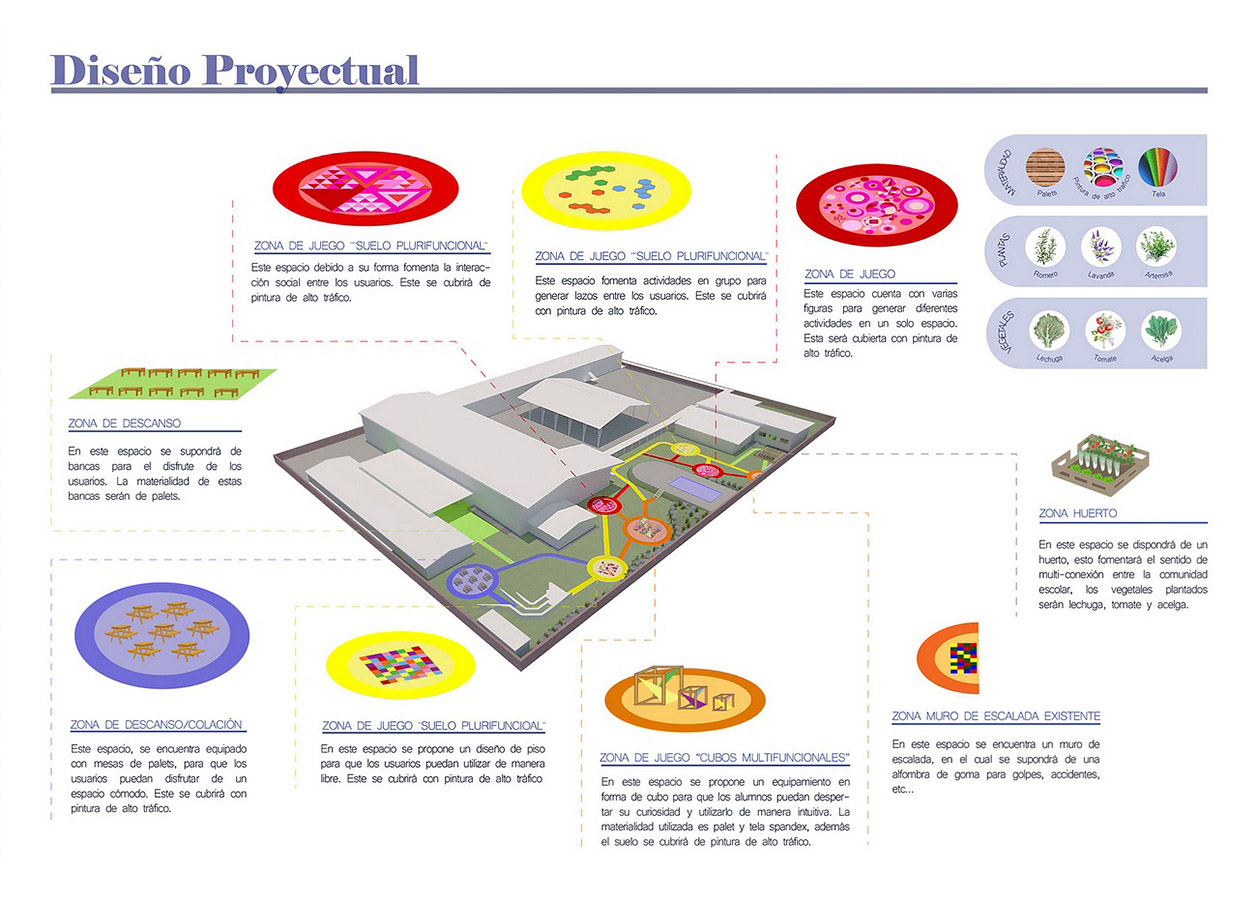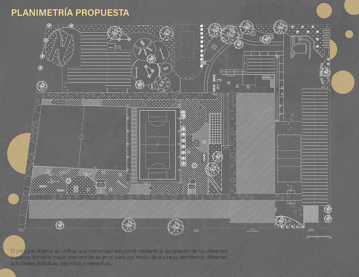 El colegio Andalién es un colegio en la comuna de Colina, al norte de Santiago, que durante la Pandemia pasó de ser un colegio que llegaba hasta octavo básico, a ser uno con la educación media completa. El aumento de los años escolares del colegio, trajo consigo no sólo adaptaciones en la forma de enseñar del colegio, sino que también cambios en los usos de la infraestructura disponible en los espacios exteriores, ya que apareció un nuevo perfil de estudiante que tiene necesidades y requerimientos distintos a los vistos hasta ahora en el lugar. Como parte de la problemática del Proyecto, aparece la necesidad de no sólo crear espacios que se adapten a este nuevo perfil de estudiante, sino que también sientan que estos espacios les pertenecen, en respuesta al distanciamiento con la institución durante los años de pandemia.