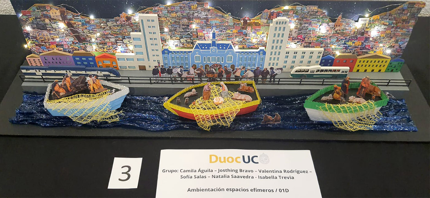 El Obispado de Valparaíso nos encarga desarrollar un Pesebre para la catedral de Valparaíso que deberá tener 9 mt. de largo por 2 mt. de ancho, la idea principal del diseño es que se tome el contexto de Valparaíso para el desarrollo de éste.