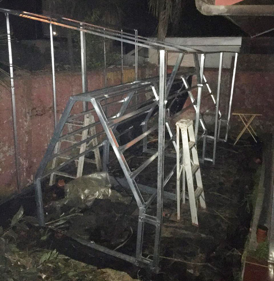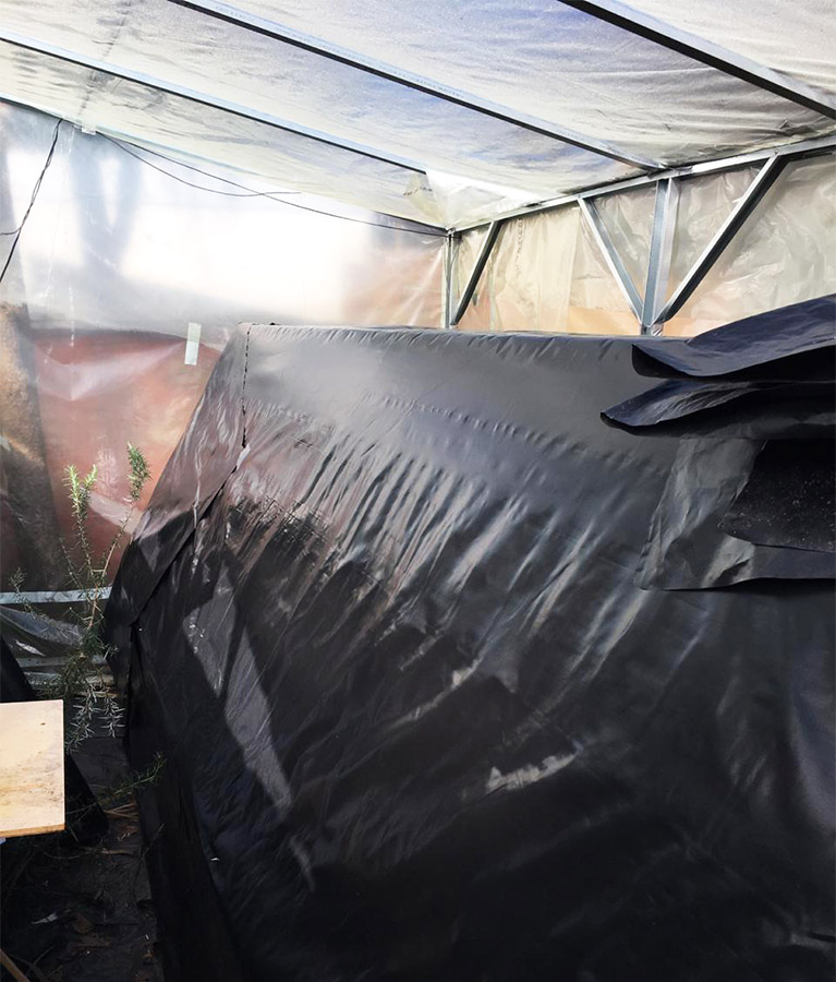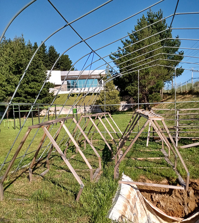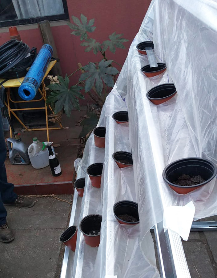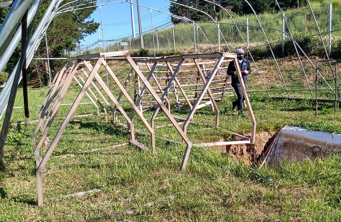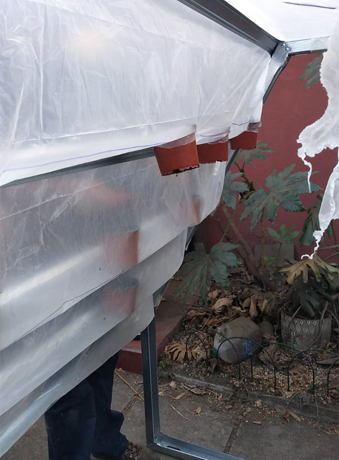 En esta tercera etapa se busca implementar un invernadero como prototipo funcional del Proyecto, para ello el equipo desarrolla considerables modificaciones en el diseño del sistema de cultivo, implementando nuevos materiales, dimensiones, distribución general de los módulos dentro de un determinado espacio (invernadero) como también específica para los cultivos potenciales a desarrollar, dentro del espacio de un módulo de plantas. Como proyecto se sigue manteniendo el cumplimiento de la hipótesis y objetivos expuestos; El cultivo acuapónico permite la producción de biomasa vegetal mediante el uso de la hidroponía, sin la necesidad de aporte de solución nutritiva artificial al medio acuoso, y optimizando la relación entre volumen de agua nutritiva y la superficie de producción en metros cuadrados. Nuestro objetivo es el de transferir tecnologías sostenibles y sustentables de producción de alimentos a situaciones de crisis y vulnerabilidad socio alimentaria. En este periodo se pone en marcha acciones para la instalación de un invernadero con un espacio de 6 x 12 m, que es ubicado en las dependencias de la Sede San Andrés de Duoc UC, seguido coordinativamente con el equipo, se realiza la fabricación de los nuevos conceptos de modelos de plantas además de la distribución dentro de este espacio. El equipo logra obtener prototipos estructurales en madera y posteriormente en metal, lo que proporciona un gran equilibrio en tiempo de construcción y resistencia. El concepto para la piscina de peces es simple, tomando como ejemplo las grandes piscinas en las empresas del norte de nuestro país, que son fabricadas a base de una excavación y recubrimiento de esta con material tela impermeable, capaz de contener el agua. Sin embargo y tristemente en este periodo se desarrolló en nuestra región una emergencia climática, en donde se provocaron daños severos a nuestros avances del proyecto y sobre todo materiales, de los cuales podemos destacar el invernadero, estructuras de plantas y panel solar. A pesar de lo ocurrido el equipo siguió trabajando, limitados de recursos, lo que se traduce en una destacada participación de los integrantes del equipo en ese momento, para hacer de este un proyecto extrapolable al extranjero que es donde con la ayuda de consulta Wap y ONG Impact Hope se pudo lograr.