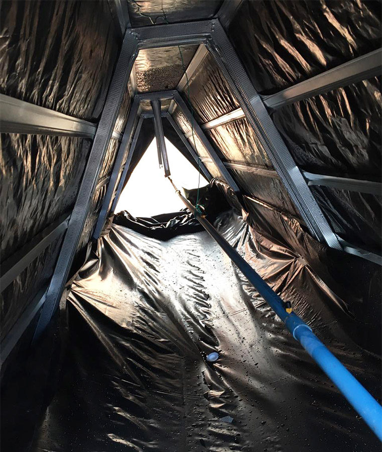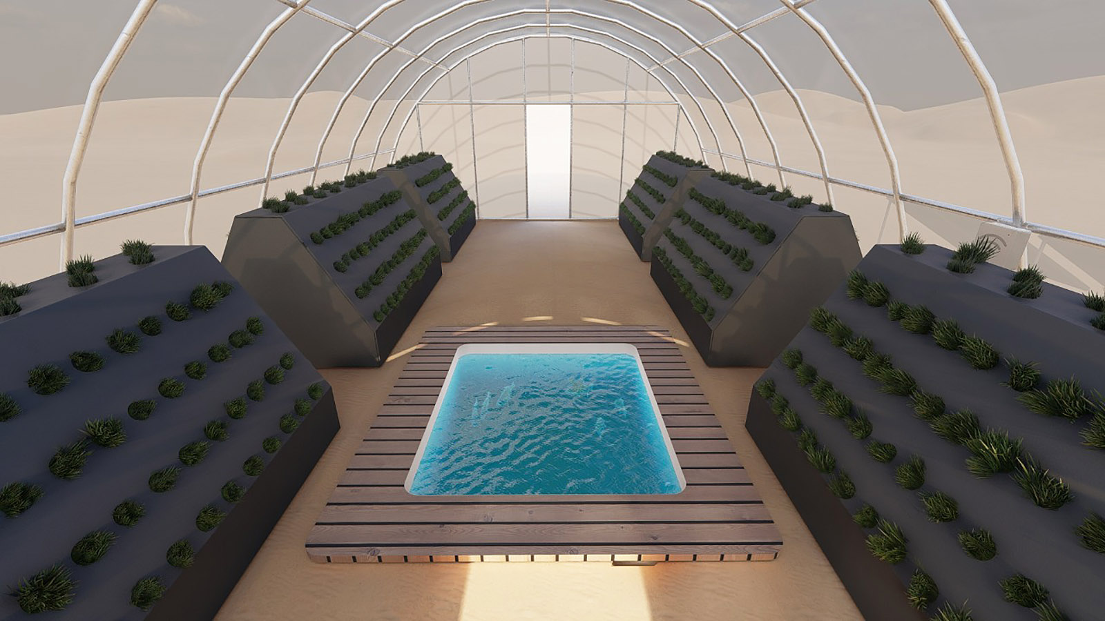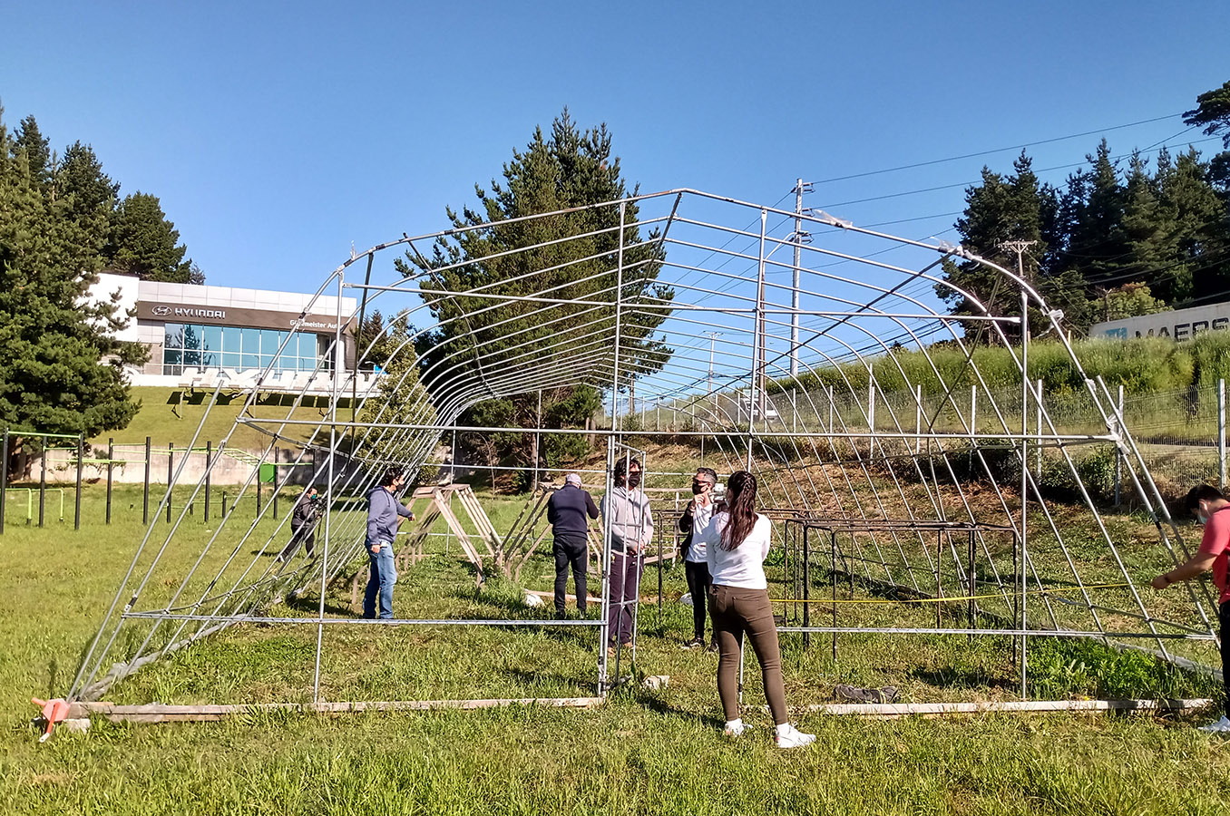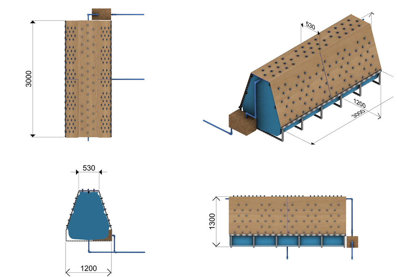 En esta tercera etapa se busca implementar un invernadero como prototipo funcional del Proyecto, para ello el equipo desarrolla considerables modificaciones en el diseño del sistema de cultivo, implementando nuevos materiales, dimensiones, distribución general de los módulos dentro de un determinado espacio (invernadero) como también específica para los cultivos potenciales a desarrollar, dentro del espacio de un módulo de plantas. Como proyecto se sigue manteniendo el cumplimiento de la hipótesis y objetivos expuestos; El cultivo acuapónico permite la producción de biomasa vegetal mediante el uso de la hidroponía, sin la necesidad de aporte de solución nutritiva artificial al medio acuoso, y optimizando la relación entre volumen de agua nutritiva y la superficie de producción en metros cuadrados. Nuestro objetivo es el de transferir tecnologías sostenibles y sustentables de producción de alimentos a situaciones de crisis y vulnerabilidad socio alimentaria. En este periodo se pone en marcha acciones para la instalación de un invernadero con un espacio de 6 x 12 m, que es ubicado en las dependencias de la Sede San Andrés de Duoc UC, seguido coordinativamente con el equipo, se realiza la fabricación de los nuevos conceptos de modelos de plantas además de la distribución dentro de este espacio. El equipo logra obtener prototipos estructurales en madera y posteriormente en metal, lo que proporciona un gran equilibrio en tiempo de construcción y resistencia. El concepto para la piscina de peces es simple, tomando como ejemplo las grandes piscinas en las empresas del norte de nuestro país, que son fabricadas a base de una excavación y recubrimiento de esta con material tela impermeable, capaz de contener el agua. Sin embargo y tristemente en este periodo se desarrolló en nuestra región una emergencia climática, en donde se provocaron daños severos a nuestros avances del proyecto y sobre todo materiales, de los cuales podemos destacar el invernadero, estructuras de plantas y panel solar. A pesar de lo ocurrido el equipo siguió trabajando, limitados de recursos, lo que se traduce en una destacada participación de los integrantes del equipo en ese momento, para hacer de este un proyecto extrapolable al extranjero que es donde con la ayuda de consulta Wap y ONG Impact Hope se pudo lograr.