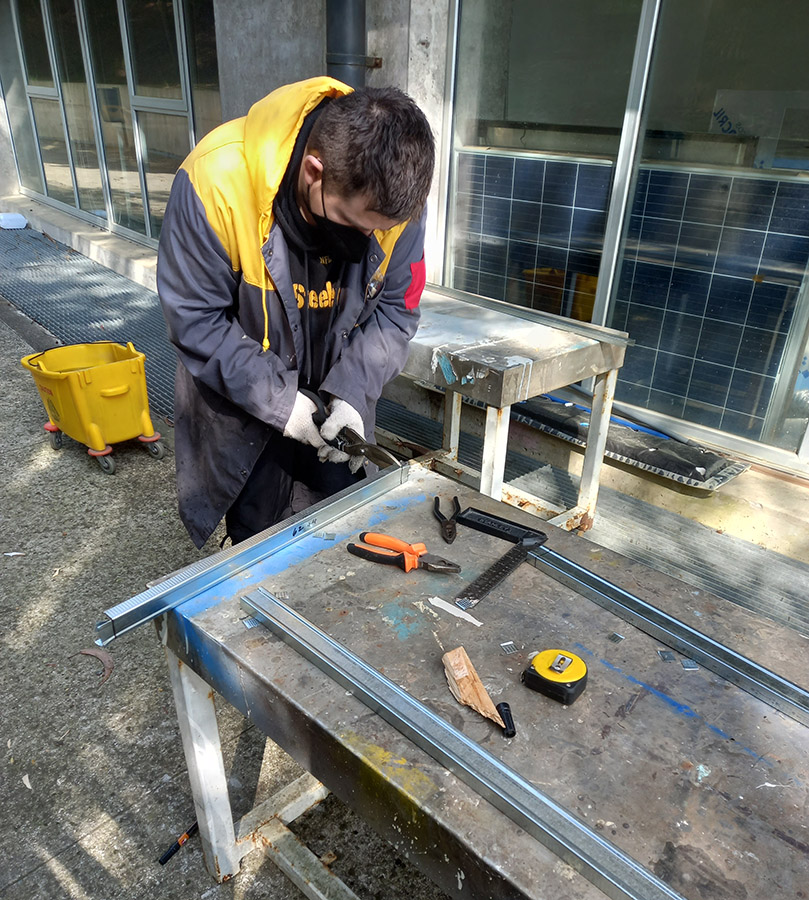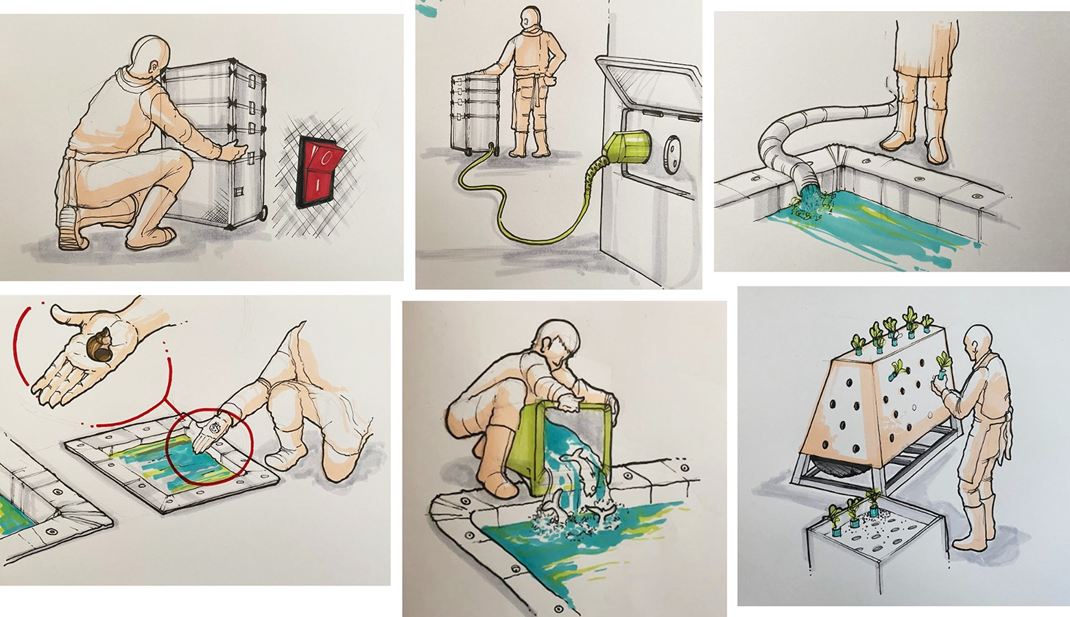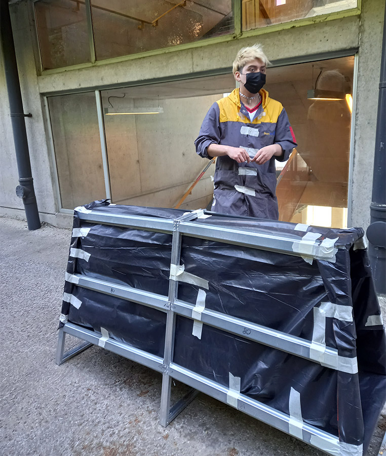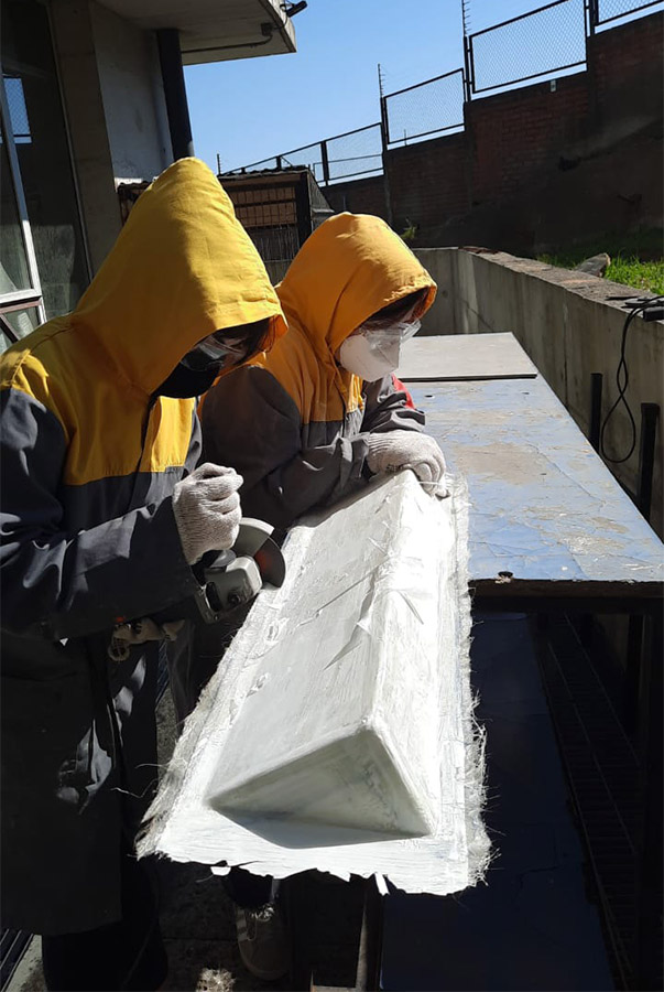El año 2021 fue un año desafiante según los objetivos planteados por el equipo. En primer lugar, reducir el volumen del caballete para abarcar mayor cantidad de cultivo en un espacio reducido y/o adaptar el sistema a todo tipo de terreno. Para ello, debíamos plantearnos las magnitudes y frecuencias en las que el sistema alimentaria biomasa vegetal y animal, cubicar el material en específico que se utilizaría, prototipar los caballetes para entender los procesos de manufactura y generar material audiovisual para la transferencia tecnológica conceptual y física. Partimos generando una ingeniería inversa de los componentes del sistema prototipado en la etapa anterior en Lonco. Esto nos permitió identificar los aspectos a mejorar en relación a materialidades, sistemas de anclaje, distribución de componentes, técnicas de manufactura, comportamiento del cerebro como interfaz, ciclo del agua, comportamiento de biomasa vegetal y animal, y mantenimiento del mismo, para posteriormente pasar a la etapa de definición de aspectos a mejorar. Con el desafío de realizar transferencia tecnológica a Pirque, comenzamos a desarrollar un Dossier técnico en que para futuras publicaciones, en el cual se detallaría ¿Qué es el Proyecto AYA?, descripción de los componentes del sistema para la comprensión del funcionamiento de este, información respectiva al cultivo, explicación de la toma de decisiones en relación a la elección de peces, elementos para el mantenimiento, etc. Los esfuerzos antes mencionados, tenían como objetivo ayudar en la manufactura del sistema, con esto nos determinamos a manufacturar los componentes en nuestra escuela utilizando a Cerebro ya testeado en Lonco. Gracias al trabajo realizado por nuestros estudiantes se construyeron 8 caballetes completos, utilizando máquinas eléctricas manuales y estacionarias, tecnología CNC y herramientas manuales. Todo esto quedó documentado y resumido en 5 videos que explican en detalle todo el proceso de armado de los componentes, además de un amplio registro fotográfico de todo el proceso. Satisfactoriamente, se envió todo lo pactado con Pirque, todo el sistema reducido a un palet, lo cual nos recordó los primeros croquis realizados en la génesis del proyecto, en el que se soñaba con llegar con un palet al lugar en conflicto. Esto nos permite seguir soñando con llegar a cumplir con el objetivo primario.