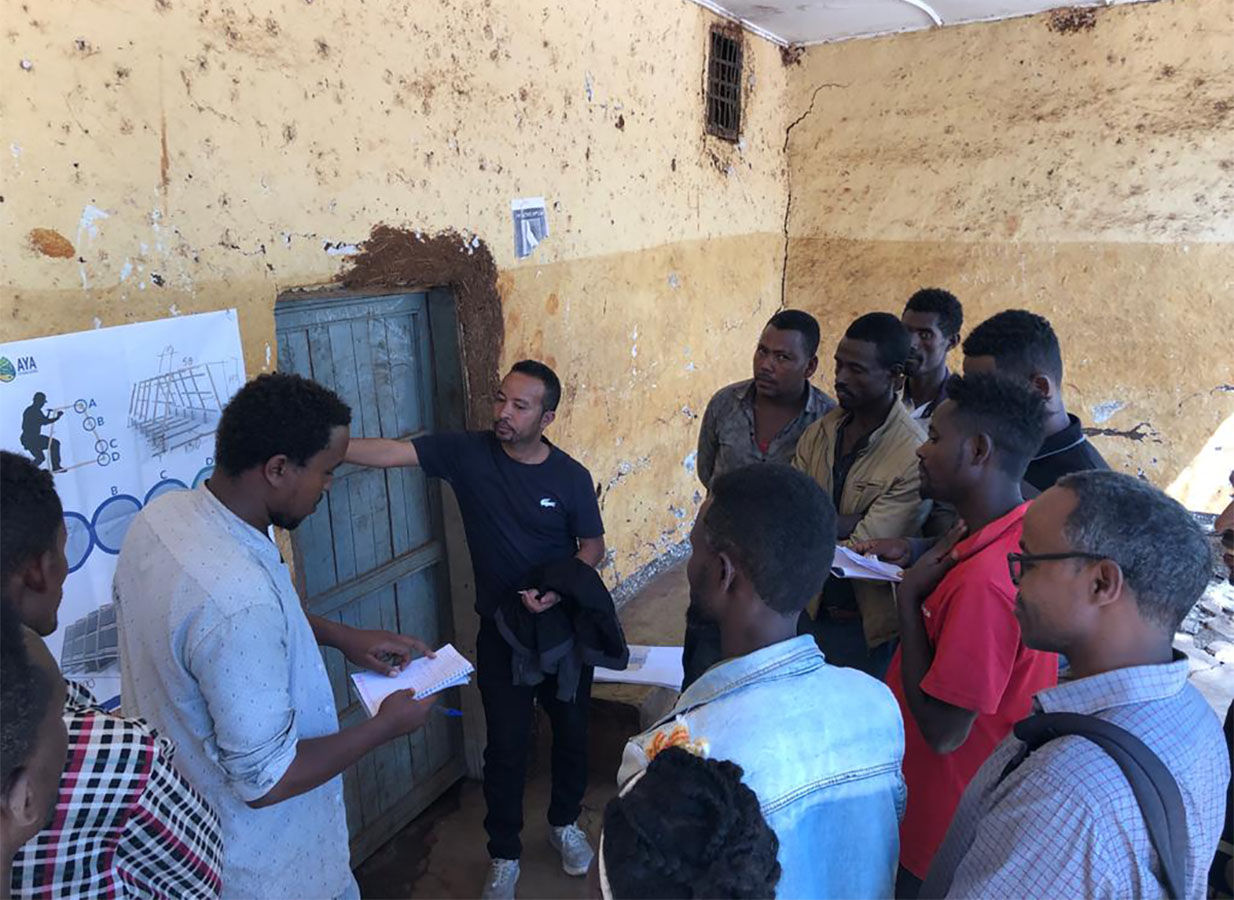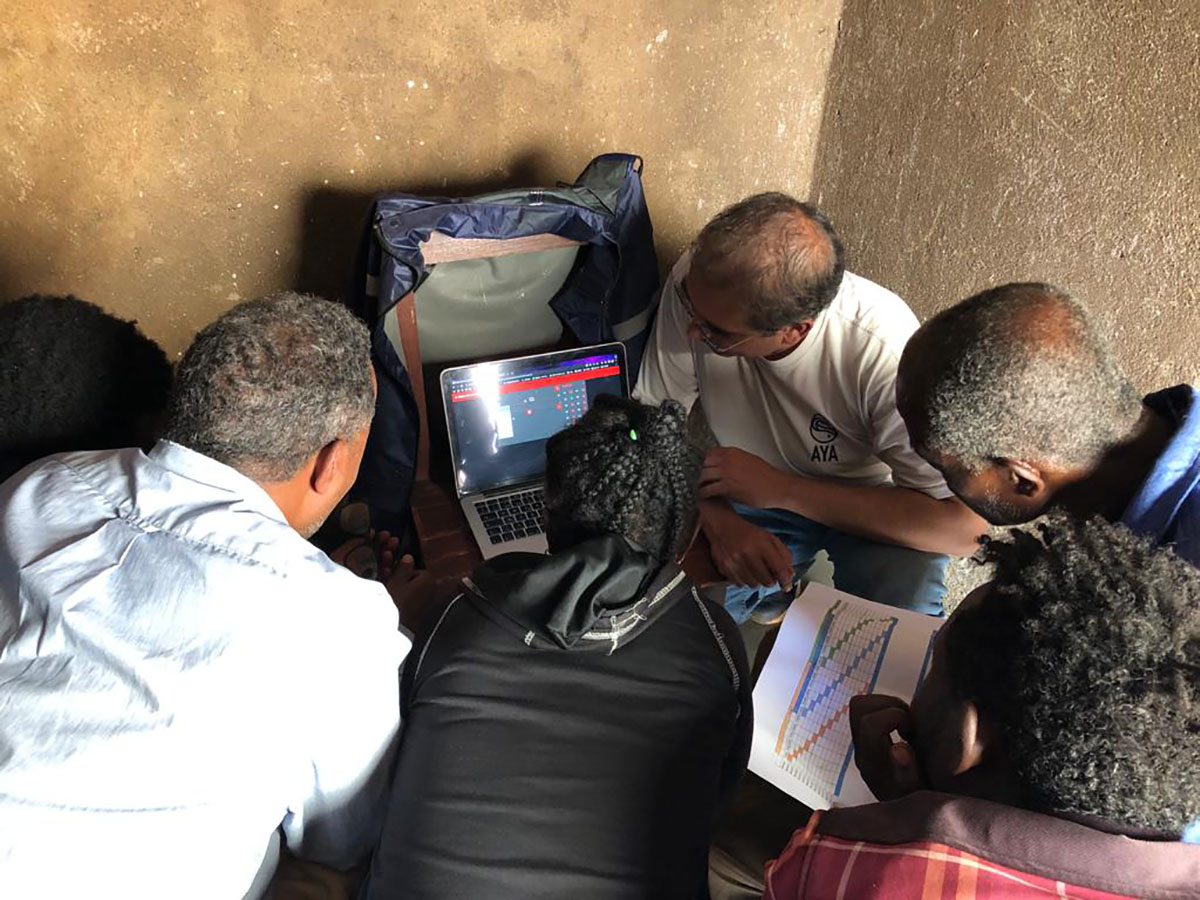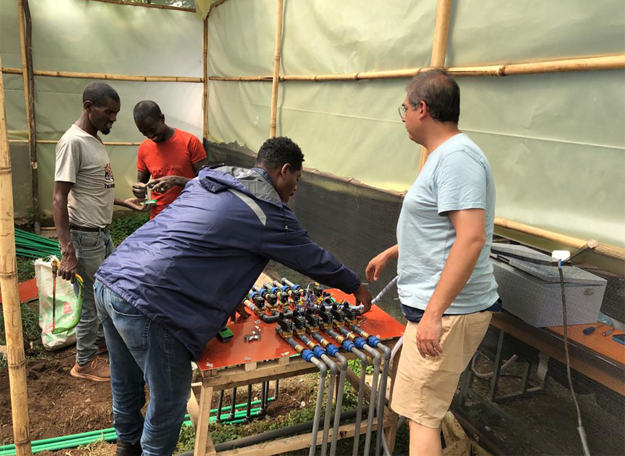 Proyecto AYA,“Sistema integrado de acuaponía y aeroponía para el cultivo de alimentos en zonas de catástrofes y campos de refugiados” / Etapa 6. En esta etapa desarrollamos la implementación, por medio de un fondo internacional, de los sistemas de AYA en dos comunidades de Etiopía, Wolaita y Arsi. En ambas comunidades el docente Pablo Melzer trabajó con las comunidades para poner en marcha el sistema y poder transferir las tecnologías para su uso. Esta etapa fue de gran complejidad, ya que enfrentar las brechas culturales y de idiomas fue en sí mismo un gran desafío. Luego poder mantener el contacto a distancia y poder acompañar a los beneficiarios en su proceso de adquisición de las habilidades fue también un gran desafío. Hoy la tecnología está en manos de la ONG en Etiopía, quienes buscan poder dar continuidad al uso y poder llegar a producir con éxito, en las difíciles condiciones del país. Gracias a este trabajo en conjunto, se logra definir en detalle los sistemas de automatización gracias al trabajo en conjunto con el equipo de laboratorio Láser y más específicamente con el estudiante Nicolás Walsen, quien gracias a las gestiones del docente Pablo Melzer, viaja a Etiopía a trabajar con las comunidades intervenidas. Gracias a lo aprendido en esta etapa de consolidación, hoy, gracias a un financiamiento CORFO/MINEDUC, AYA Tecnologías está siendo transferida a un microempresario de la comunidad de Santa Juana para a partir de la implementación de un PMV poder formular en conjunto con el equipo a fondos concursables y así poder escalar y llegar a implementar con éxito un sistema productivo basado en las tecnologías AYA compartidas y desarrolladas en conjunto.