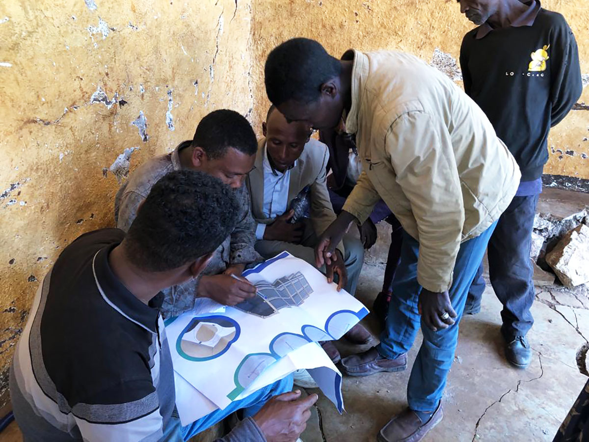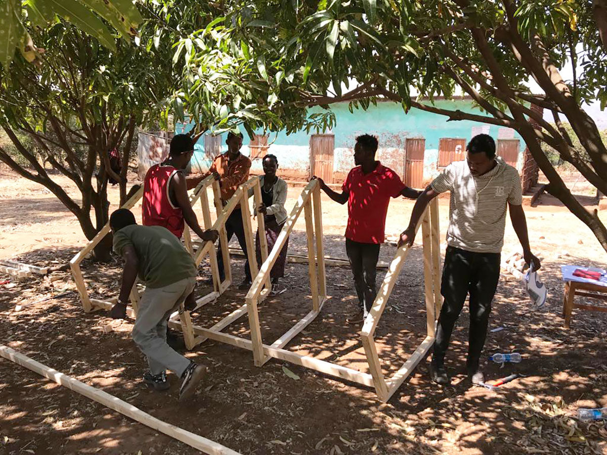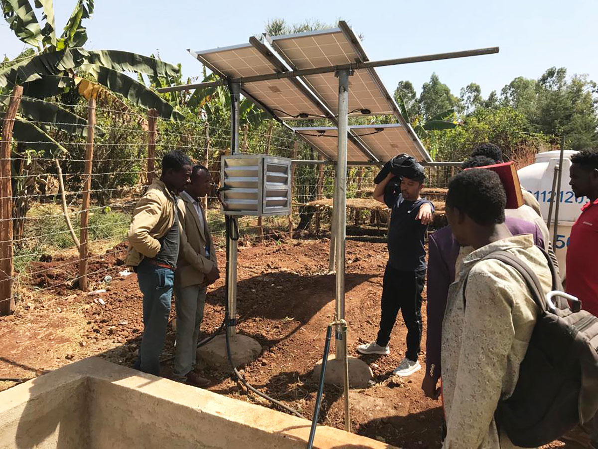 Proyecto AYA,“Sistema integrado de acuaponía y aeroponía para el cultivo de alimentos en zonas de catástrofes y campos de refugiados” / Etapa 6. En esta etapa desarrollamos la implementación, por medio de un fondo internacional, de los sistemas de AYA en dos comunidades de Etiopía, Wolaita y Arsi. En ambas comunidades el docente Pablo Melzer trabajó con las comunidades para poner en marcha el sistema y poder transferir las tecnologías para su uso. Esta etapa fue de gran complejidad, ya que enfrentar las brechas culturales y de idiomas fue en sí mismo un gran desafío. Luego poder mantener el contacto a distancia y poder acompañar a los beneficiarios en su proceso de adquisición de las habilidades fue también un gran desafío. Hoy la tecnología está en manos de la ONG en Etiopía, quienes buscan poder dar continuidad al uso y poder llegar a producir con éxito, en las difíciles condiciones del país. Gracias a este trabajo en conjunto, se logra definir en detalle los sistemas de automatización gracias al trabajo en conjunto con el equipo de laboratorio Láser y más específicamente con el estudiante Nicolás Walsen, quien gracias a las gestiones del docente Pablo Melzer, viaja a Etiopía a trabajar con las comunidades intervenidas. Gracias a lo aprendido en esta etapa de consolidación, hoy, gracias a un financiamiento CORFO/MINEDUC, AYA Tecnologías está siendo transferida a un microempresario de la comunidad de Santa Juana para a partir de la implementación de un PMV poder formular en conjunto con el equipo a fondos concursables y así poder escalar y llegar a implementar con éxito un sistema productivo basado en las tecnologías AYA compartidas y desarrolladas en conjunto.