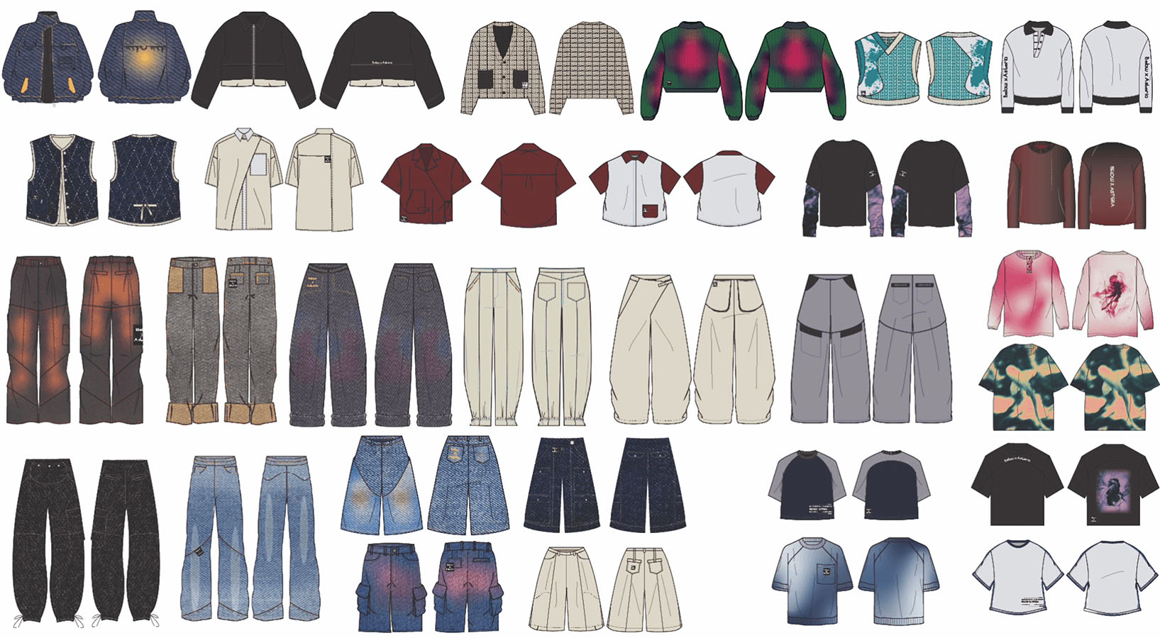 PRESENTACIÓN FINAL: Cada equipo realizó una colección cápsula para la marca Below Apparel, con un mínimo de treinta prendas, donde se confeccionaron dos Outfits completos para realizar una sesión de fotos y un fashion film. Se entregó también un Book Digital con el proceso de investigación de tendencias, propuesta de la marca por equipo, carta de materiales, colores, avíos, etc., fichas técnicas y fichas showroom, planilla de planificación de la colección y Brand Book de la marca creada por los equipos.