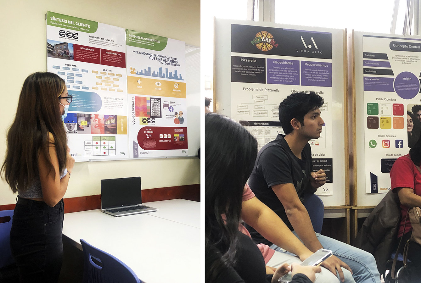 Nuestros estudiantes, tanto de la mención de «Identidad Visual» como de «Interfaces e Interacciones», organizados en Agencias de Diseño realizaron alianzas profesionales con empresas y/o instituciones a fin de resolver problemáticas y necesidades reales, todas posibles de ser abordadas y resueltas desde el Diseño Gráfico. Las Agencias enfrentaron retos como campañas comunicacionales, re diseño completo de marcas, desarrollo de packagings, diseño y construcción de estrategias de posicionamiento digital (Website, Apps y RRSS) y asesorías en comunicación visual. En todos los casos se propició el desarrollo de estrategias innovadoras de productos o servicios, proyectando beneficios de acuerdo a las necesidades de los usuarios finales.