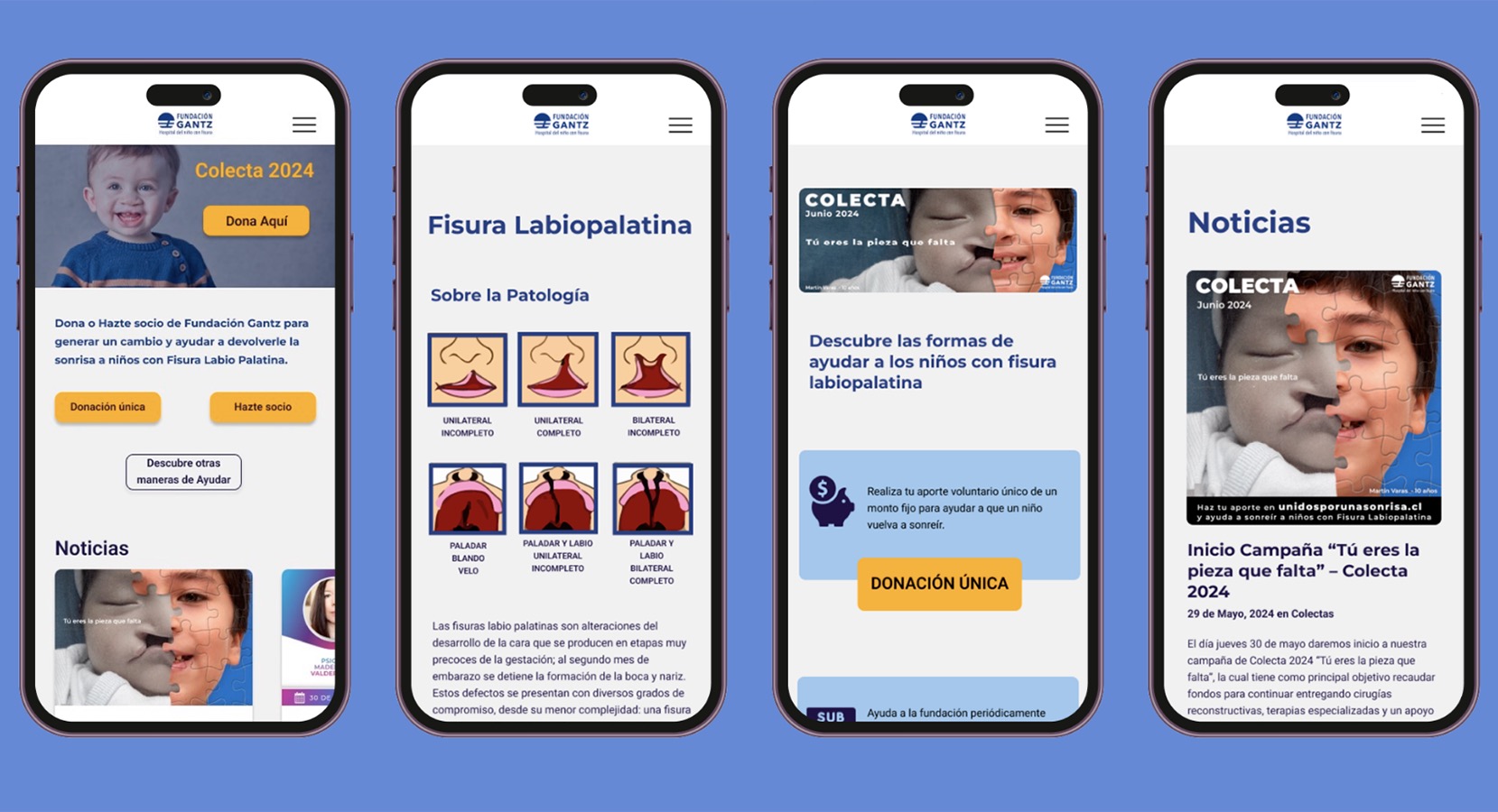 El Proyecto colaborativo de la Escuela de Diseño Duoc UC en conjunto con la Fundación Gantz, consistió en rediseñar el sitio web de la fundación a partir de las problemáticas de información y donación a través del portal. En el sitio se requiere dar a conocer información a padres, pacientes, público general y empresas respecto de los tratamientos de los niños, patología, tratamientos y apoyos asociados con el fin de que las personas se involucren en el proceso y puedan ver resultados de otros pacientes. Otro objetivo fundamental del proyecto es fomentar la donación a través de hacerse socio y de ayudas a la fundación; ya sea a través de donaciones particulares, empresas, colegios u otro tipo de institución. Para que esta información llegue a distintos formatos, es importante considerar que el proyecto sea responsivo (que se pueda acceder desde múltiples plataformas). Con esta problemática, los estudiantes de quinto semestre de Diseño Gráfico de la Mención de Interfaces e Interacciones, proponen una solución gráfica a través de diseños de interfaces y prototipos para cubrir las necesidades que requiere el cliente.