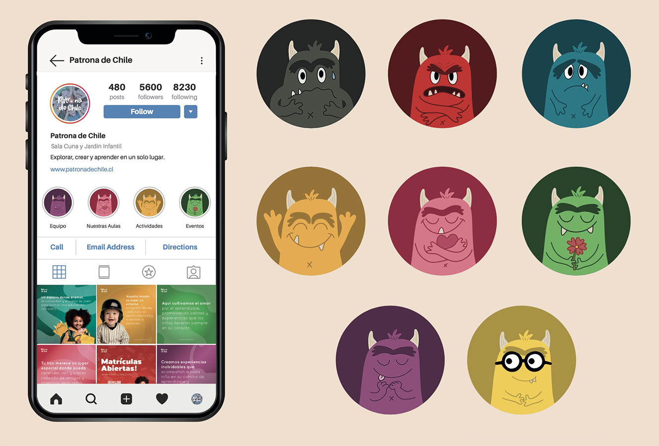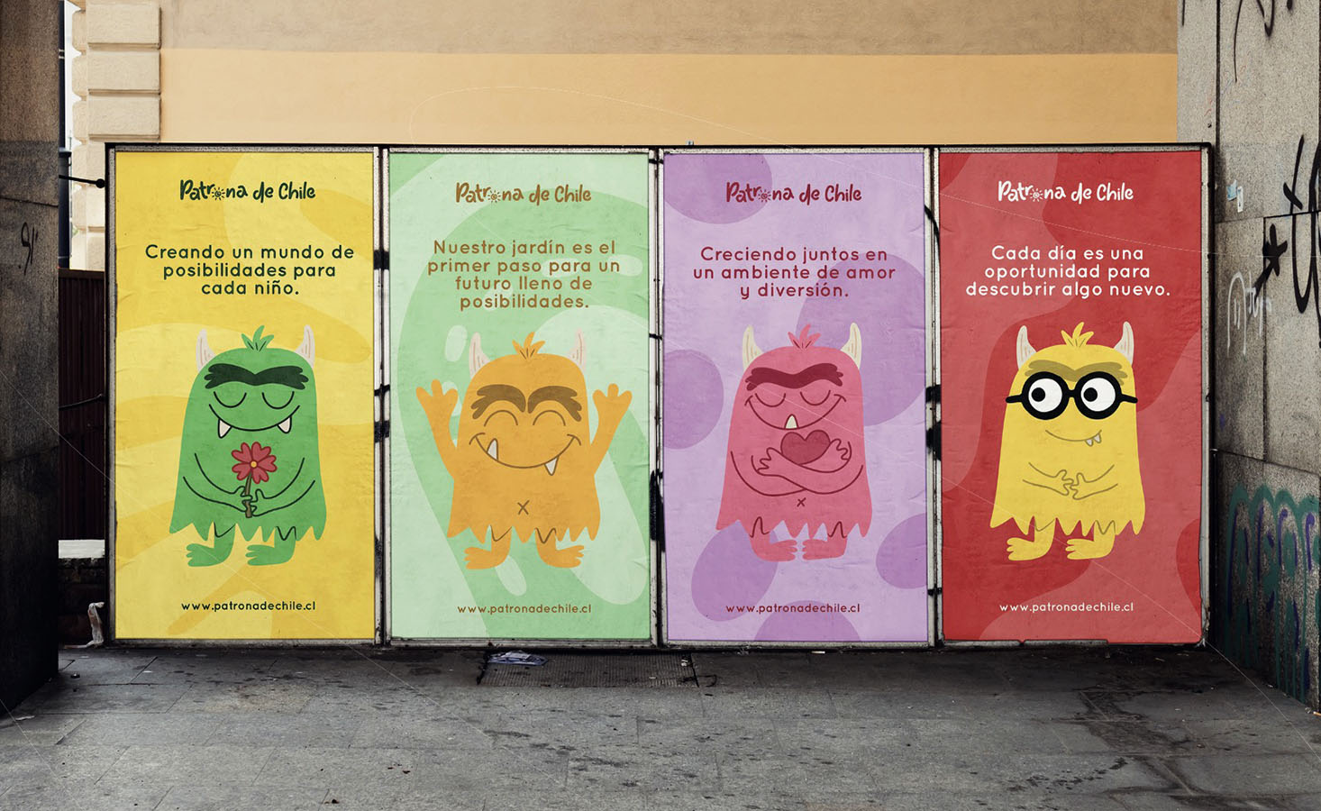 El Proyecto se desarrolla en conjunto con el Jardín Infantil «Patrona de Chile» perteneciente a la comuna de Maipú, con el cual se busca desarrollar la Identidad del Jardín tanto como desde su marca (logotipo) y el sistema de orientación del espacio (señalética).