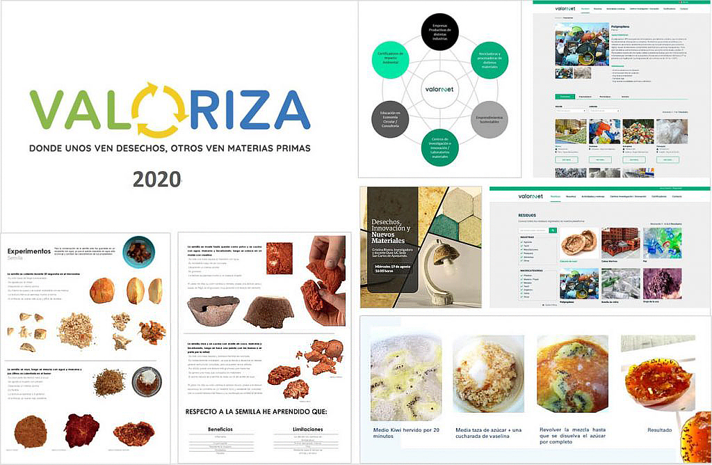 Durante el 2020 el laboratorio Valoriza ha estado cerrado, lo que llevó a concentrar esfuerzos en educación y difusión (charlas online) con gran interés de público interno y externo, nacional e internacional. Por otra parte, a partir de un análisis con empresas nacionales se plantea la necesidad de crear un punto de encuentro, una plataforma que permita a diferentes actores conectarse, informarse, educarse y generar transacciones de residuos / materias primas. Así surge el Proyecto VALORNET, como una plataforma digital para potenciar la Economía Circular y valorización de residuos. La plataforma ya cuenta con marca y prototipo funcional para el 2021 buscar financiamiento para su implementación y operación. Durante el 2021 se ha retomado la experimentación material en forma remota, a través de alumnos experimentando desde sus casas, aplicando la metodología del Material Driven Design, con foco en descubrir propiedades para posibles nuevos materiales en diversas experimentaciones en base a residuos orgánicos e inorgánicos.